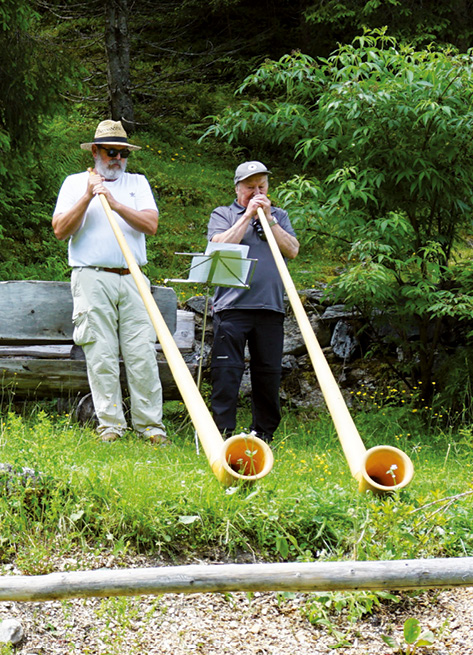 Der zweite Ausflug führte uns nach Gerlos ins Wildgerlostal zum „Alpen Gasthof Finkau“. Nach einem gemütlichen und hervorragenden Mittagessen machten wir uns auf eine Wanderung rund um den kleinen See auf, vorbei an der mit viel Liebe errichtete Kapelle! Eine 2. Gruppe marschierte zur „Trisslalm“ auf 1.583 m. Unsere zwei Musikanten Wilfried und Karl spielten mit den Waldhörnern beim Wegkreuz einige Weisen und später bei Kaffee und Kuchen konnten wir unter Begleitung der Ziehharmonika auch noch einige Lieder singen.