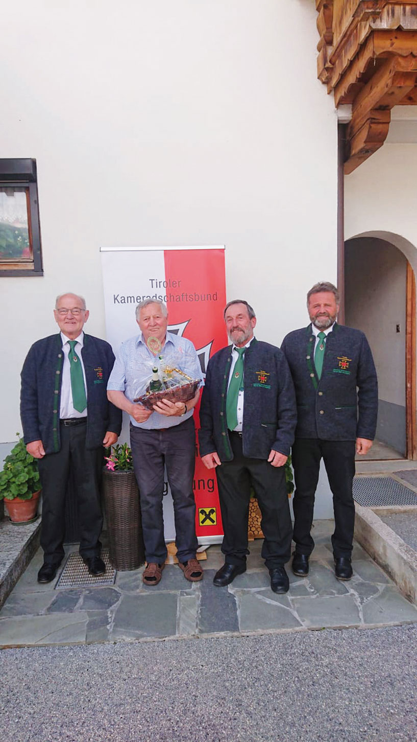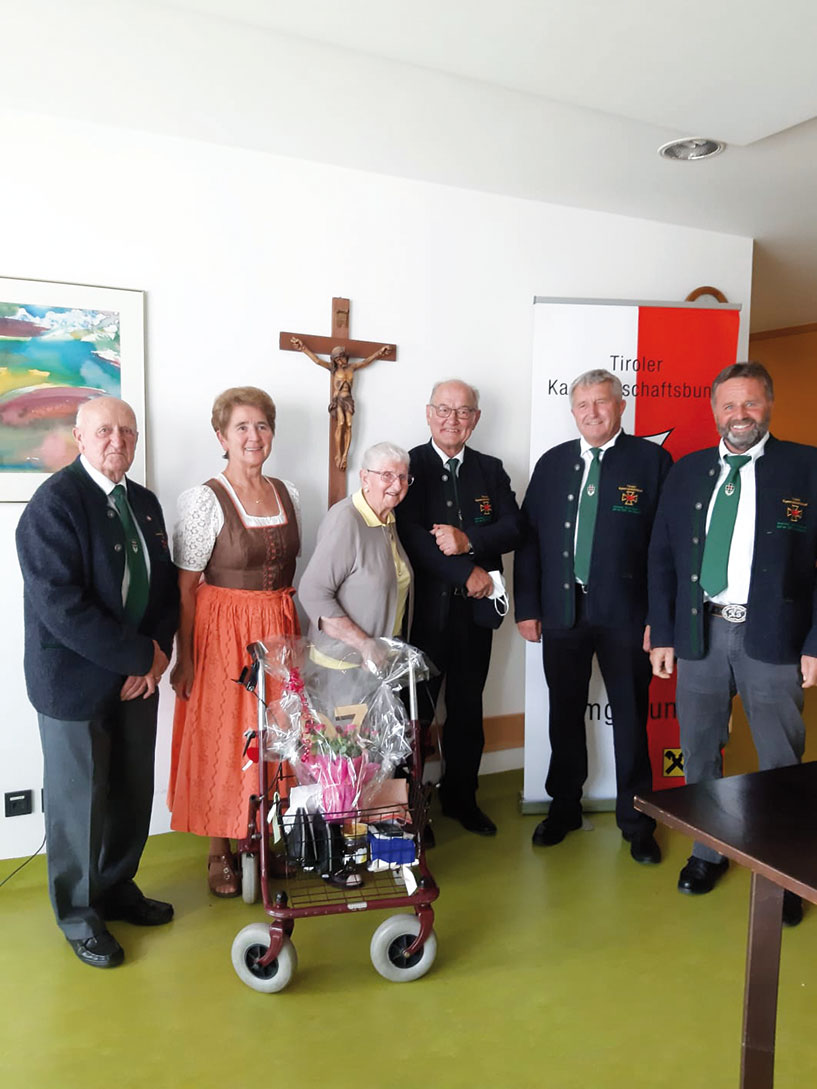 Am 20. Juni Herrn Friedl Stöckl (1), Rohrberg, zum 70er, am 22. Juni Herrn Franzal Larcher (2), Ramsau, zum 95er, am 23. Juni Herrn Franz Eberharter (3), Zellberg, zum 80er, am 10. Juli Herrn Franz Eberharter (4), Aschau, zum 70er, am 11. Juli Herrn Franz Tipotsch (5), Zellberg (zur Zeit im Klara Heim in Hall), zum 92er und am 26. Juli Fahnenpatin Rosa Rohrmoser (6), Zell (zur Zeit im Seniorenheim in Vomp) zum 97er.