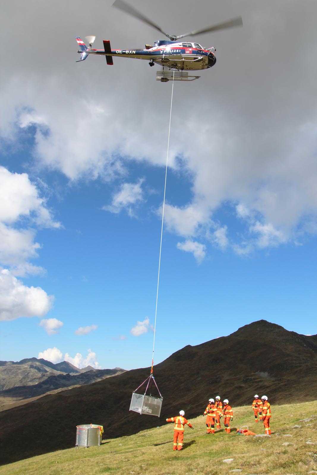 Pünktlich um 7.00 Uhr startete der Konvoi aus den Bezirken Schwaz, Innsbruck-Land, Innsbruck Stadt und Imst vom Feuerwehrhaus Gerlos auf rund 2.000m zur Fußalm im Skigebiet Gerlos. Am Vormittag wurden Personen- und Materiaflüge durch den Polizeihubschrauber „Libelle Tirol“ auf dem Berg durchgeführt und nach dem Mittagessen fand ein kurzer Funktest mit allen Flughelfern statt sowie Löschflüge mittels Bumbi-Bucket. Als krönender Abschluss konnten die Teilnehmer noch einen kurzen Rundflug mit dem Polizeihubschrauber machen.