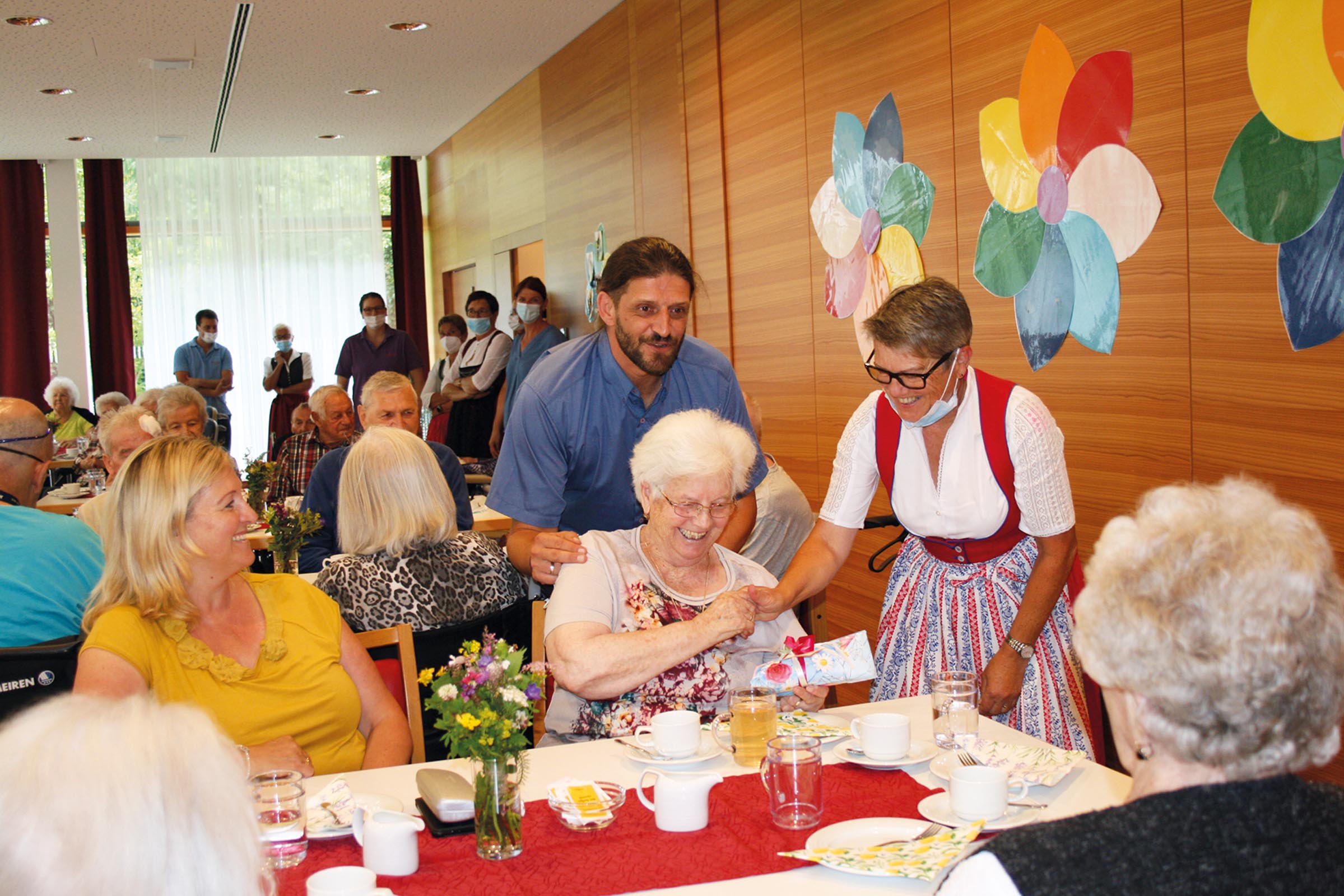 So finden seit Juni wieder die monatlichen Geburtstagsfeiern im Festsaal statt. Die erste Feier im heurigen Jahr wurde vom Ginzlinger Frauenbund unter der Leitung von Ingrid Frontull organisiert. Musikalisch umrahmte die Festlichkeit unser Haus-Duo Rosi und Rainer. (Bild 1)