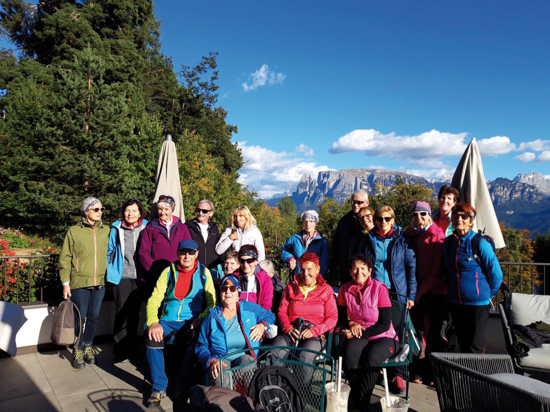 Nur kurz war dann der Rückweg nach Oberbozen. Die „Uhabigen“ wanderten noch weiter der „Freudpromenade“ entlang bis „Lichtenstern“, immer mit grandiosen Blick auf die „Seiser Alm und Schlern mit Santner und Eurin Spitze“ im gleißenden Sonnenschein.
