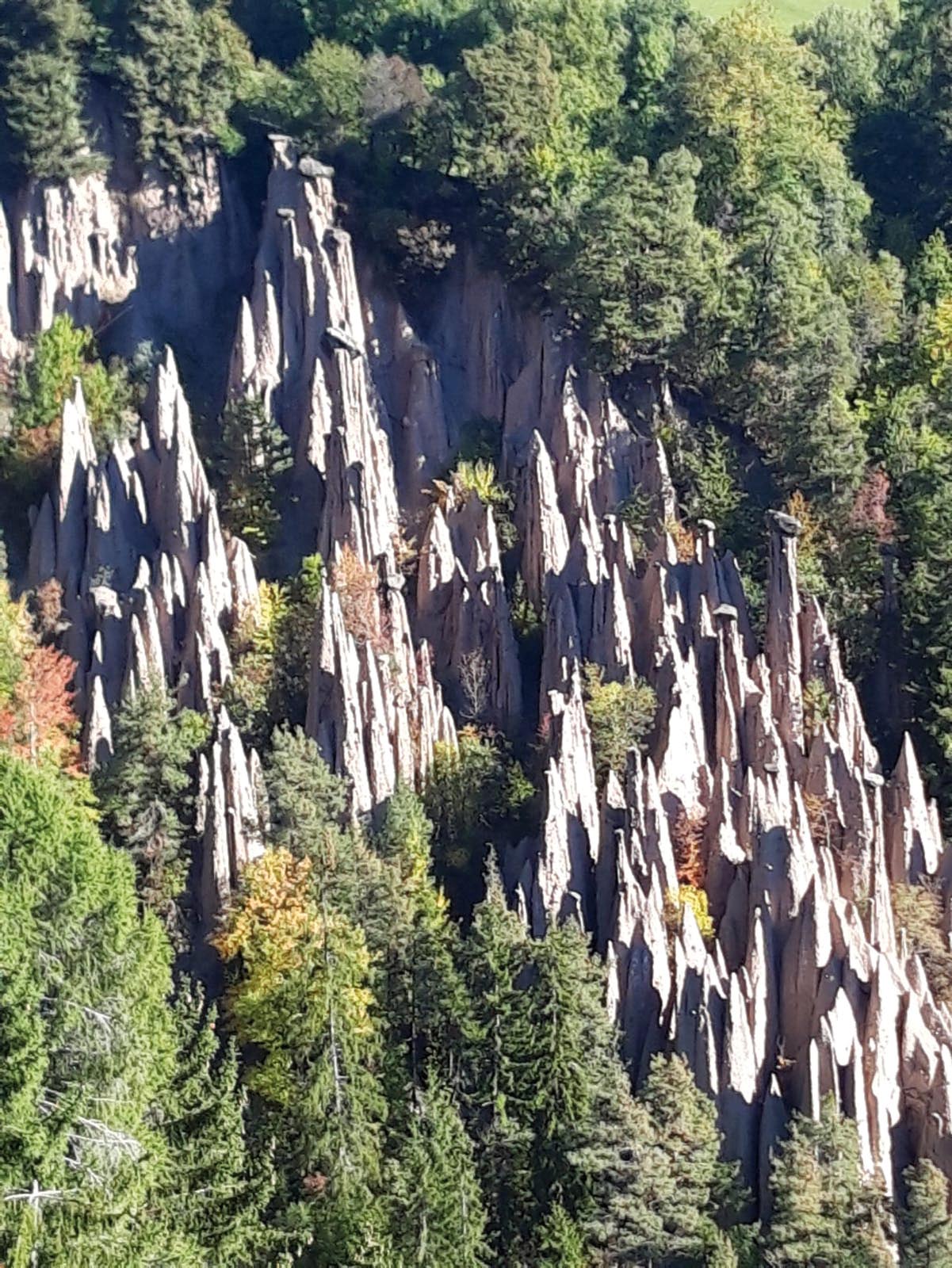Alle Wanderbegeisterten starteten mit der „Rittner Seilbahn“ nach Oberbozen und weiter mit der „Rittner Schmalspurbahn“ bis Klobenstein. Als Ziel wurde die Besichtigung der Erdpyramiden gewählt. Sie zählen zu den Naturwundern, gerne auch als „Lehmsäulen mit Hut“ bezeichnet, die wir natürlich bestaunen wollten.
