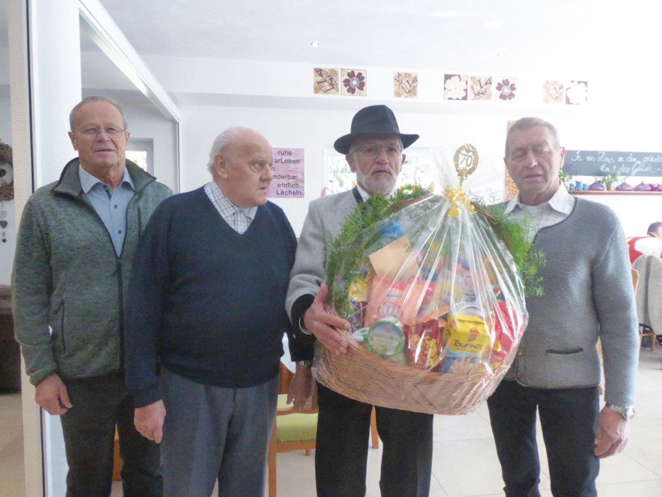 Von Seiten der Schützen gratulierten insbesonders Obmann Christian Erler mit den Marketenderinnen und bedankten sich im Namen aller Schützen für die langjährige und aufopfernde Arbeit für die Schützenkompanie Bruck am Ziller. Für den Pensionistenverein Bruck am Ziller gratulierten Obmann Alois Widner und OStv. Helmuth Lackner und wünschten ihrem Mitglied das Allerbeste für die Zukunft. Auch der Donnerstag-Stammtisch stellte sich als Gratulant ein. Es war eine sehr nette und gesellige Feier und alle wünschten dem Werner viel Gesundheit im Kreise seiner Familie. Bereits bei der Familienfeier am Freitag erhielt Werner eine gemalte Schützentafel von besonderem Wert überreicht.