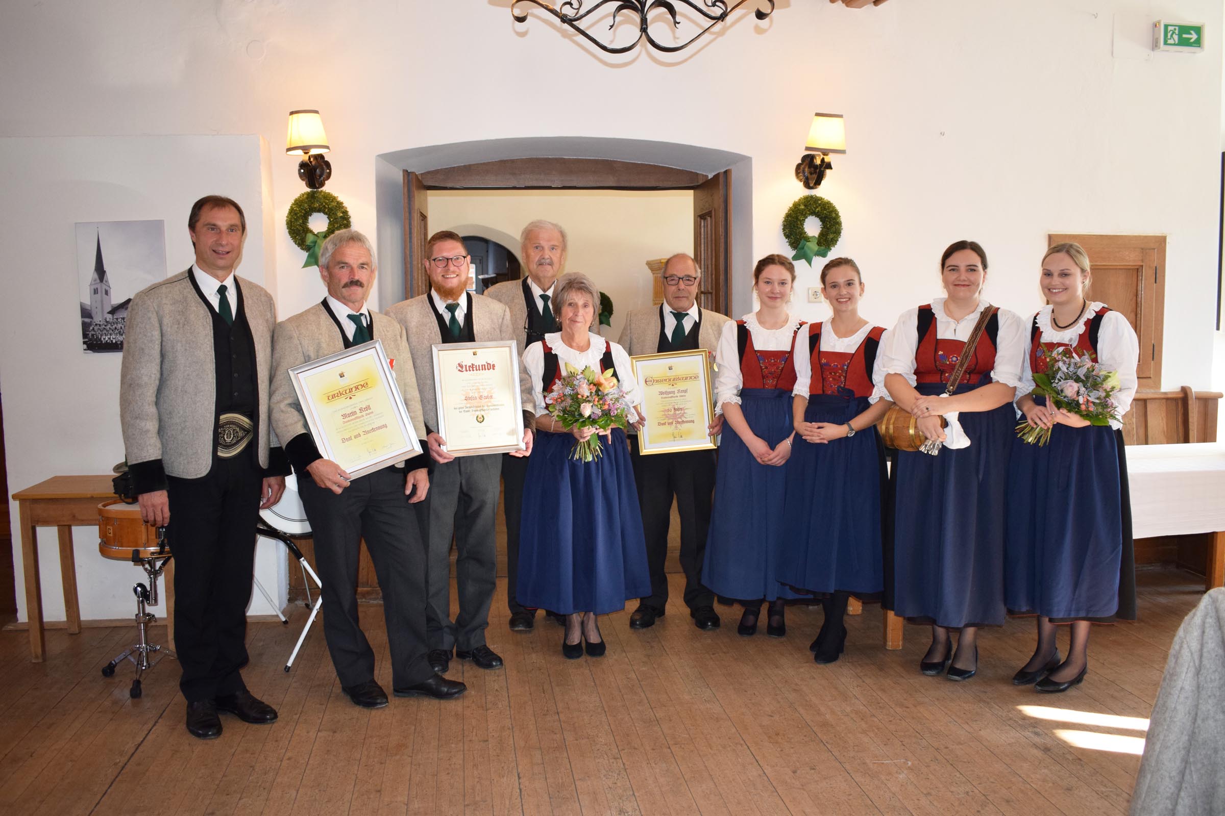 Das grüne Verdienstzeichen für seine langjährige Funktionstätigkeit erhielt Stefan Gruber. Für 25-jährige Mitgliedschaft erhielt Martin Kröll und für 50-jährige Mitgliedschaft „Urgestein“ Wolfgang Kropf die Auszeichnungen.