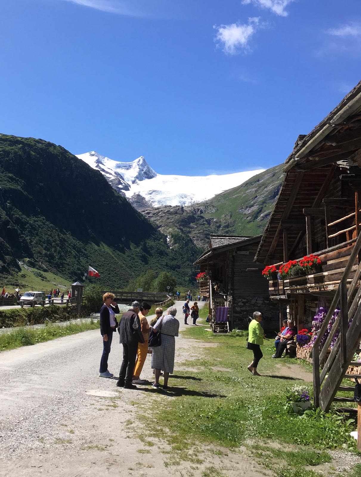 weiter mit dem Traktorzug nach Innergschlöß. Aufgrund des Murenabganges in Wald i. P. mussten wir die Fahrt anstatt über Gerlos über den Pass Thurn wählen, was jedoch