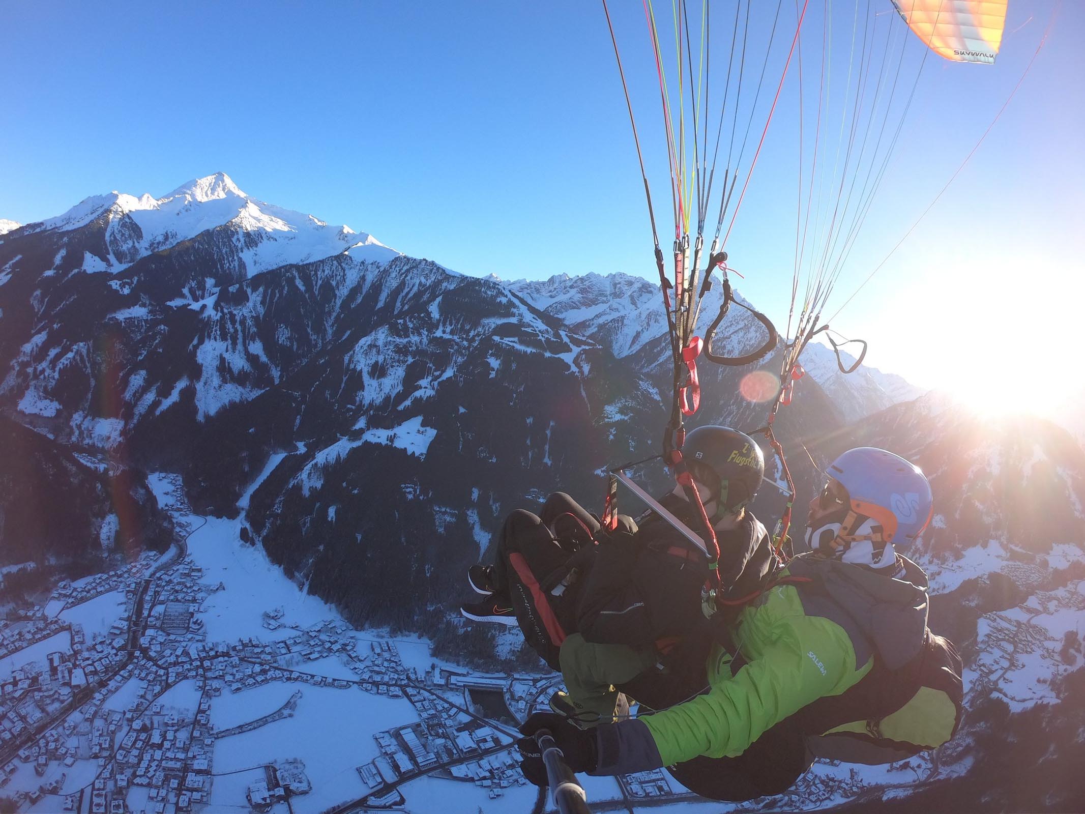 Um das Wochenende sportlich noch weiter abzurunden, wagten sich Mauritz und seine Freunde und Teamkollegen an einen Tandemflug, durchgeführt von den Piloten der Zillertaler Flugschule. Hoch hinaus und über den Dächern Mayrhofens hinweg – eine Erfahrung, die „Die Urlauber“ so schnell sicher nicht vergessen werden.