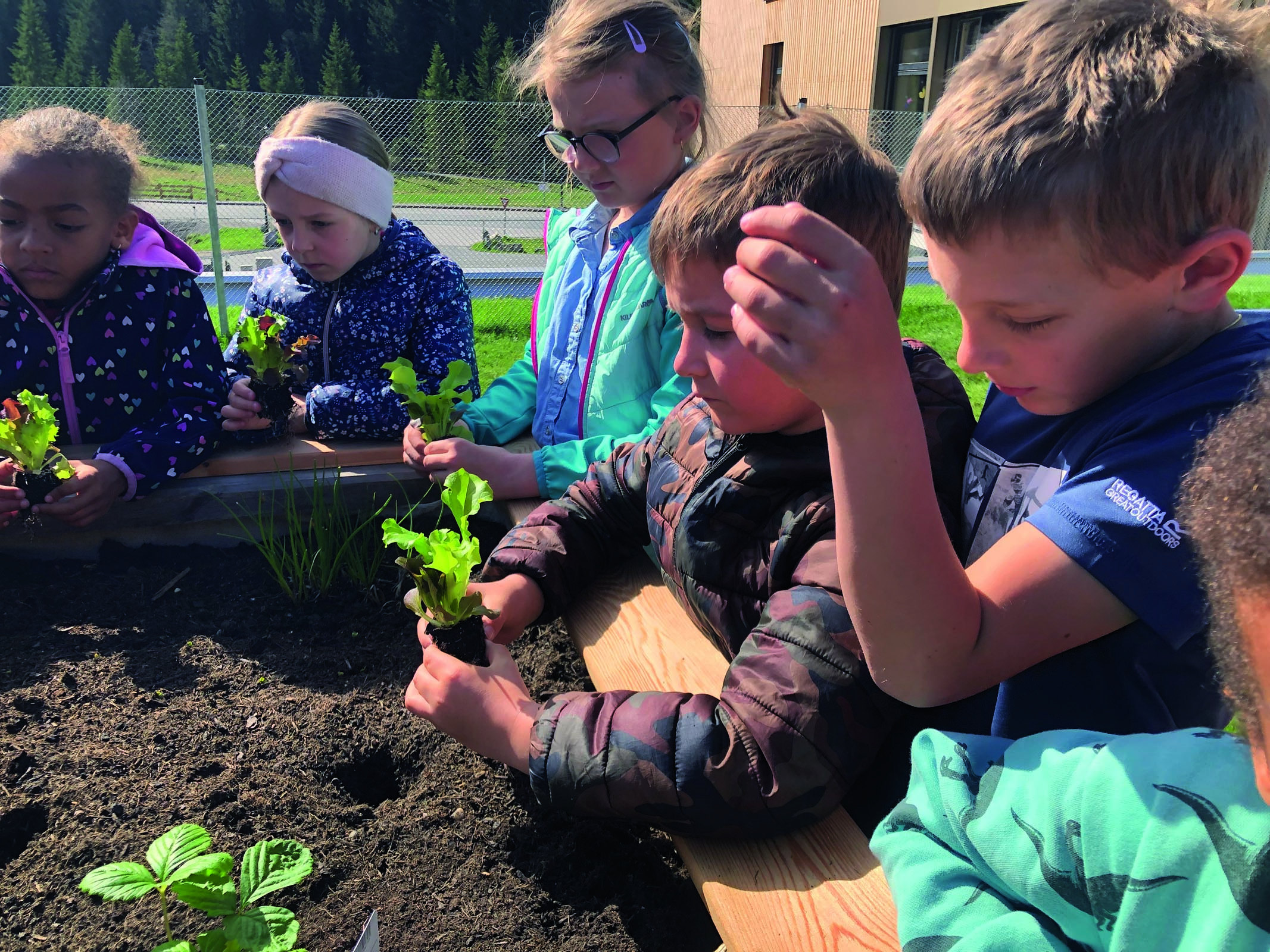 Schnittlauch, Radieschen, Erdbeeren und Pflücksalate wachsen und gedeihen ab sofort im neuen Hochbeet auf dem Schulhof der Volksschule Gerlos. In einer Pflanzaktion konnten die Schülerinnen und Schüler der 1. und 2. Stufe unter Anleitung von Klassenlehrerin Anna Kreidl und Schulwart Christian Imp die aromatisch duftenden Pflänzchen in die Erde bringen. Dabei lernten die Kinder nicht nur die einzelnen Pflanzen näher kennen, sondern erfuhren auch, wo sie im Alltag eingesetzt werden können.