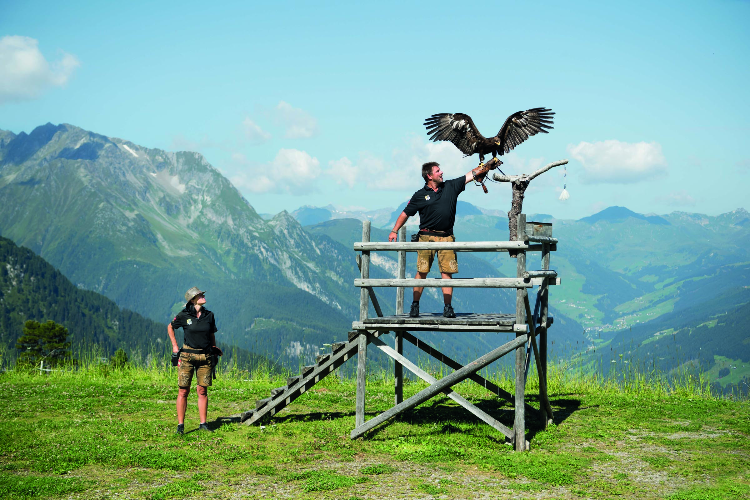 Mit der Adler-Bühne Ahorn gibt es die höchstgelegene Greif-VogelStation Europas auf 2.000 Metern bereits seit mehr als 10 Jahren. Adler, Bussarde, Uhus und Co. lassen sich bei der einstündigen Greif-Vogel-Vorführung täglich um