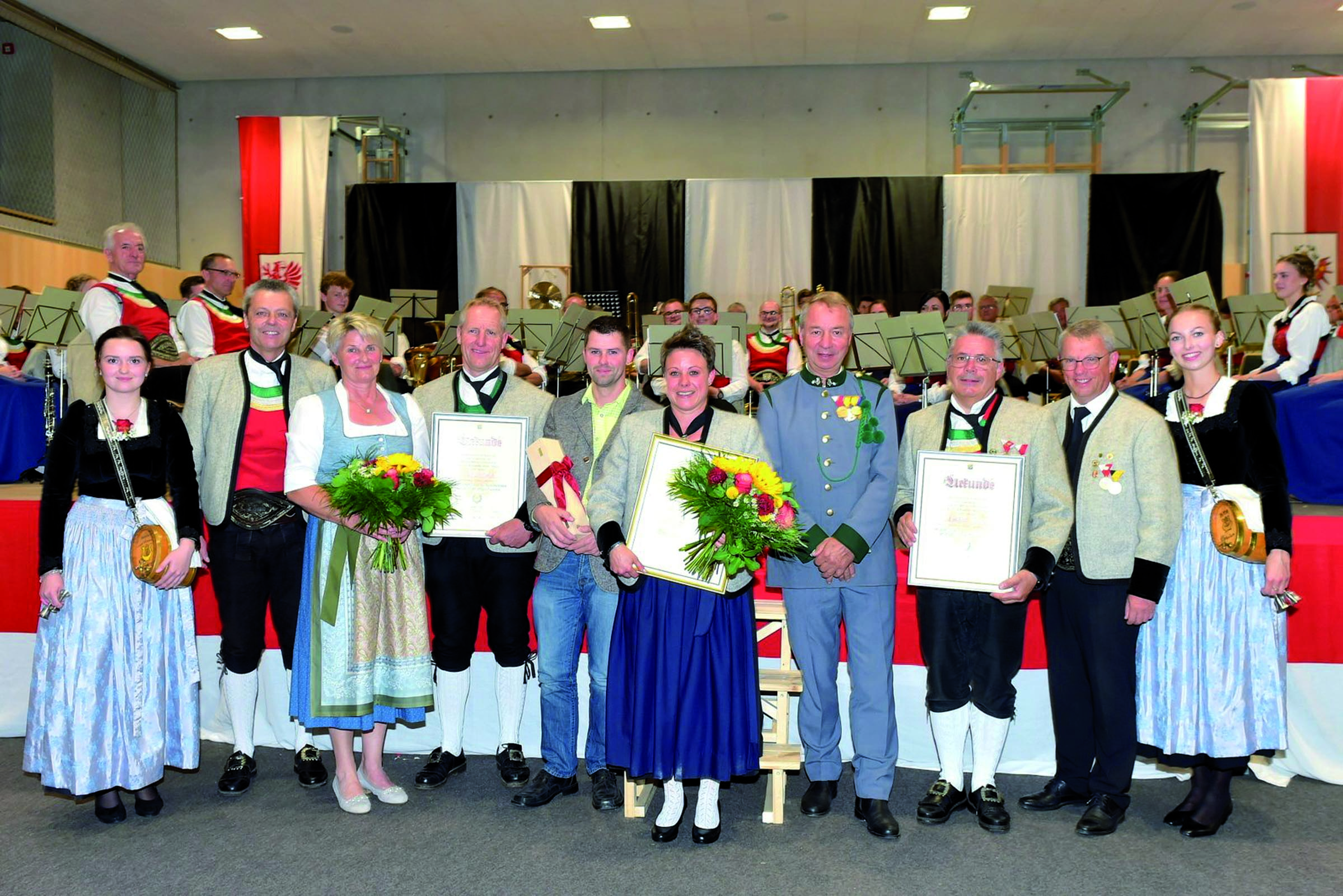 In diesem besonderen Rahmen wurde Bianca Kellauer für 25 Jahre aktive Mitgliedschaft geehrt. Weiters erhielten Walter Geisler und Christian Erhart (BMK Gerlos und aktueller Funktionär bei der Orig. Tiroler Kaiserjägermusik) das Verdienstzeichen in Grün für langjährige Funktionärstätigkeiten. Die Ehrungen wurden von Bezirksobmann-Stv. Bgm. Robert Pramstrahler und Obmann der Orig. Tiroler Kaiserjägermusik Peter Brandstätter übergeben.