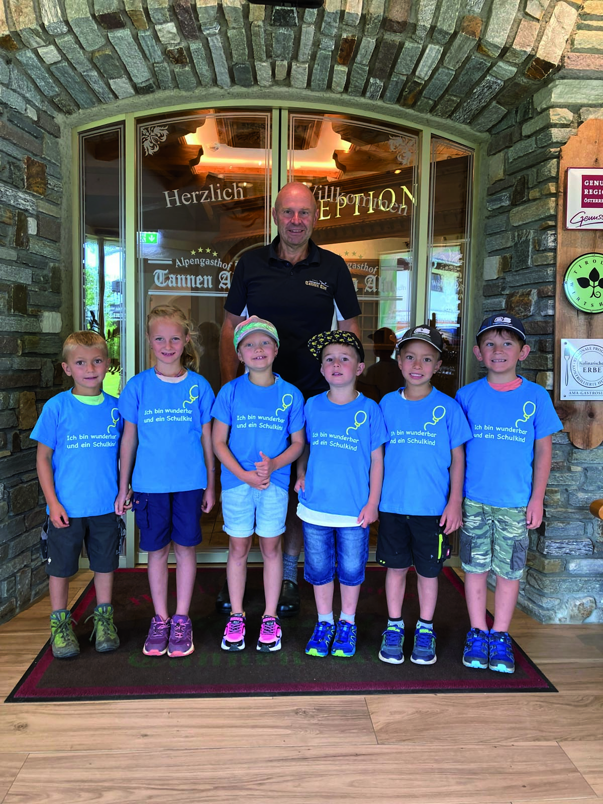 Des Weiteren möchten sich die Vorschulkinder Mathias, Mariella, Lisa, Samuel, Jonas und Luca ganz herzlich bei Tannenalmchef Helmut Kröll vom Stummerberg für die coolen T-Shirts bedanken.