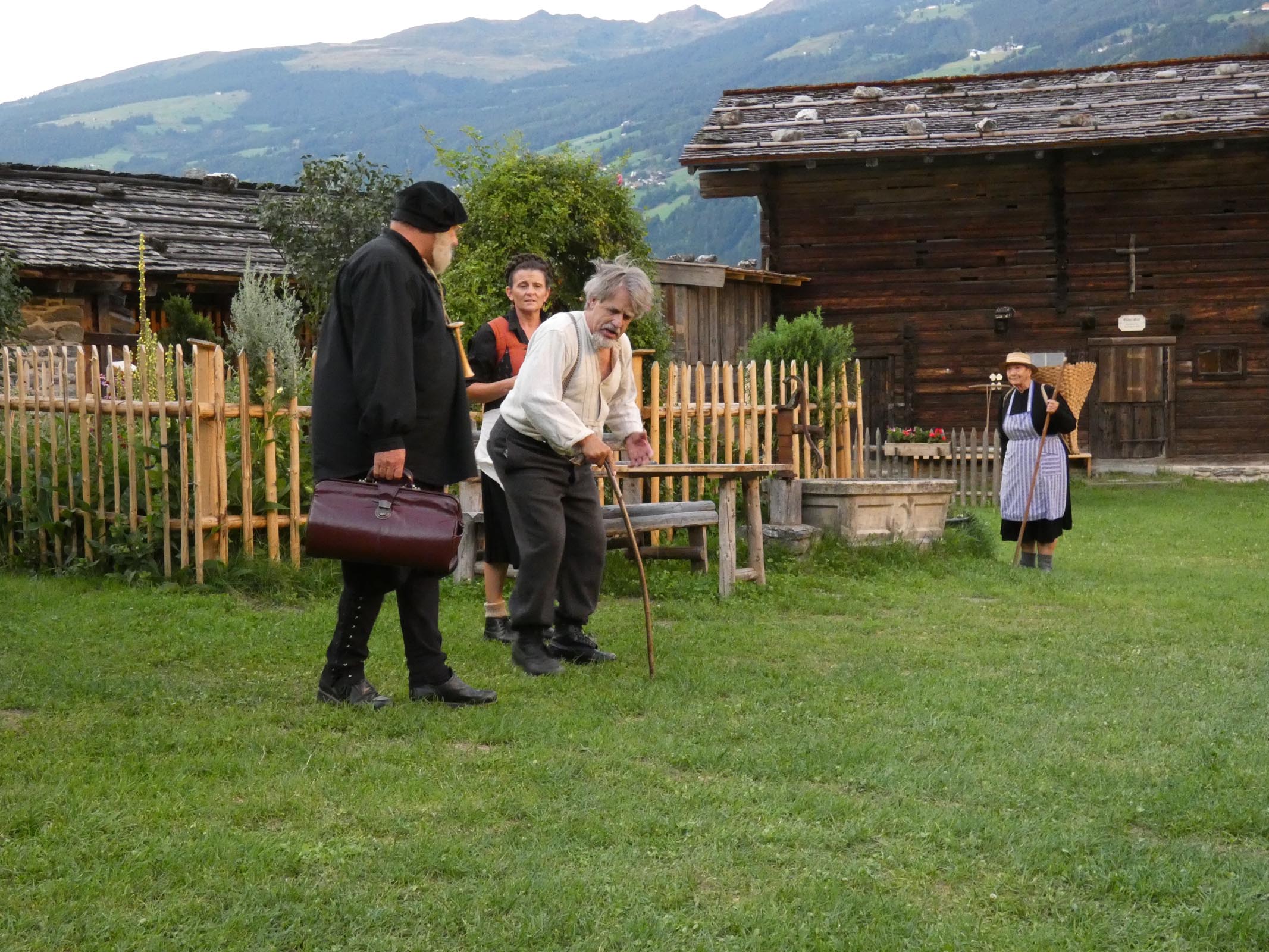 Ganz und gar begeistert von der Aufführung berichtet sie von ihrem Abend im Theater. „Gegen halb acht zogen Gewitterwolken Richtung Zell und Wind kam auf. Erst sah es so aus, als ob die Aufführung, wie in der Woche zuvor, ins Wasser fiele, aber rund 20 Minuten später beruhigte sich das Wetter und alle Zuschauer konnten ihre Plätze auf der ausverkauften Tribüne vor dem Regionalmuseum einnehmen. Spielleiterin Hildegard Lehner (Buch und Regie) eröffnete den Theaterabend. Die besondere musikalische Umrahmung des Stücks und die Beleuchtung waren genau so gelungen wie die Kostüme und Requisiten. Das ganze Ensemble passte hervorragend in die Kulisse des Regionalmuseums. Die SchauspielerInnen gingen komplett in ihren Rollen auf, egal ob Bäuerin, Arzt oder Gendarm. Ein ganz besonderes Lob gilt den Kindern: Maxl und seinen Freunden. Ein weiteres Highlight waren die tierischen Komparsen. Absolut empfehlenswert für alle Theaterfans und Geschichtsinteressierten.