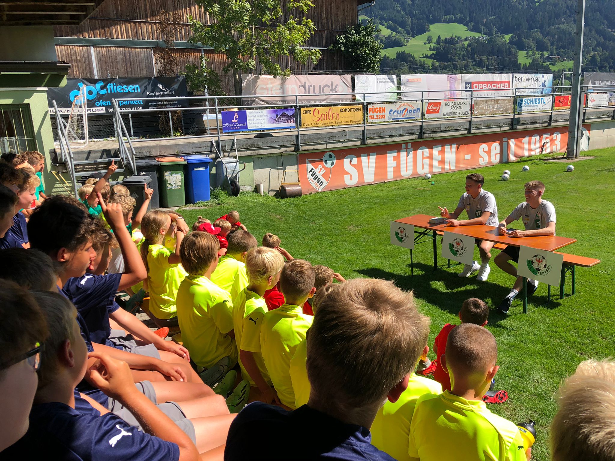 Neben dem täglichen Fußballtraining standen abwechslungsreiche Aktivitäten auf dem Programm. Bei verschiedenen Wettbewerben, einer Abkühlung im Fügener Schwimmbad, Soapsoccer, Tischfußball, Turnieren und vielem mehr kam bei Kindern und Trainern nie Langeweile auf. Absolutes Highlight war das große Abschlussturnier sowie der Besuch von zwei Profispielern der WSG Tirol inklusive Preisverleihung für die Wettbewerbe am letzten Camptag.
