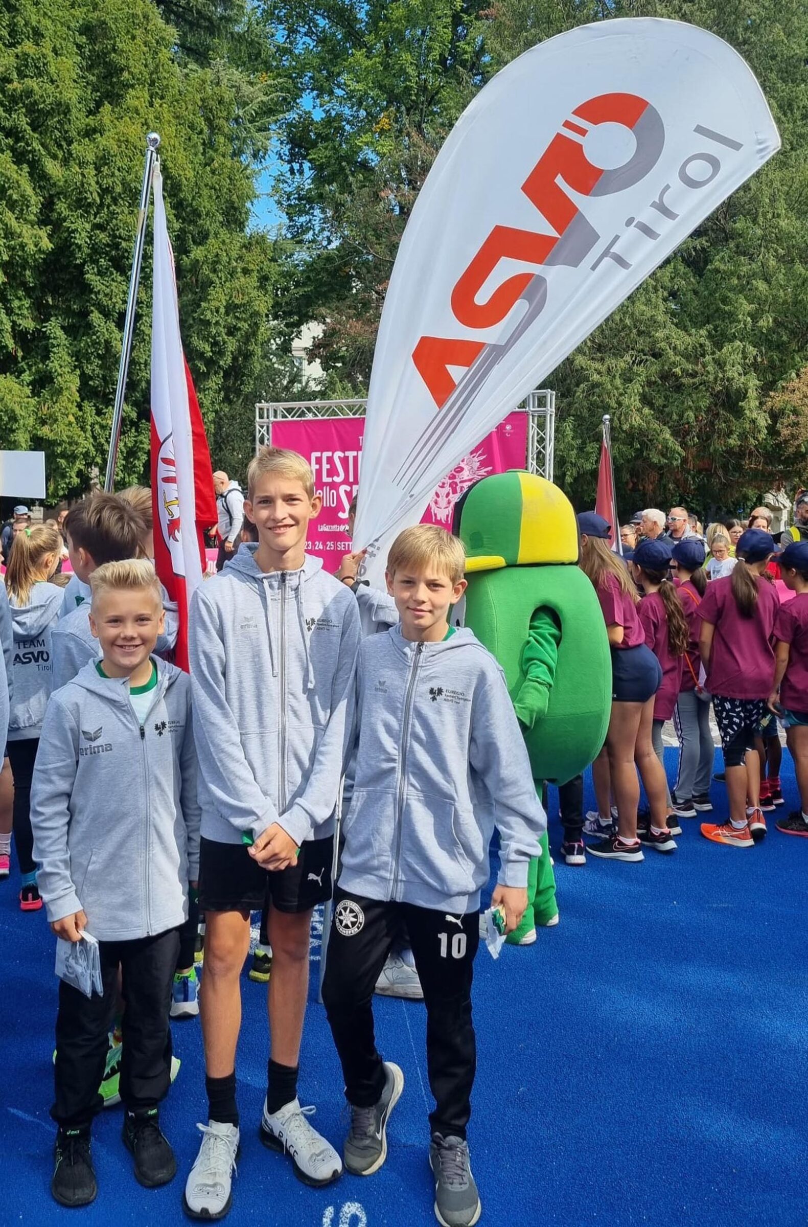 Auf einer eigens aufgebauten leicht ansteigenden Sprintstrecke auf dem „Piazza Dante“ inmitten von Trient, mit professioneller Zeitnehmung und echter Startpistole, war es für die jungen Sportler ein aufregendes Event vor toller Zuschauerkulisse.