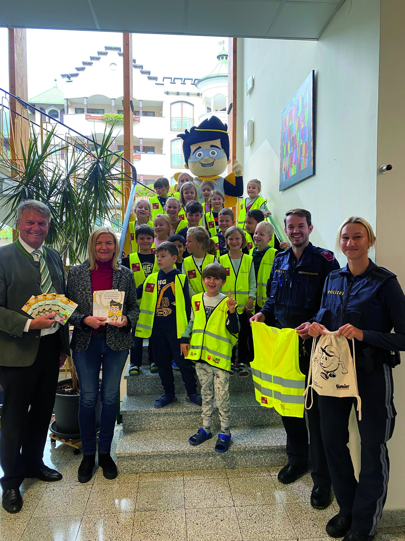 Nach dem Motto „Jeder Unfall ist einer zu viel“, verteilt der Verein Sicheres Tirol seit Jahren reflektierende Kindersicherheitswesten & kindgerechte Verkehrsinformationsbüchlein an Volksschulkinder, um bereits die Jüngsten im Straßenverkehr für die Gefahren zu sensibilisieren.