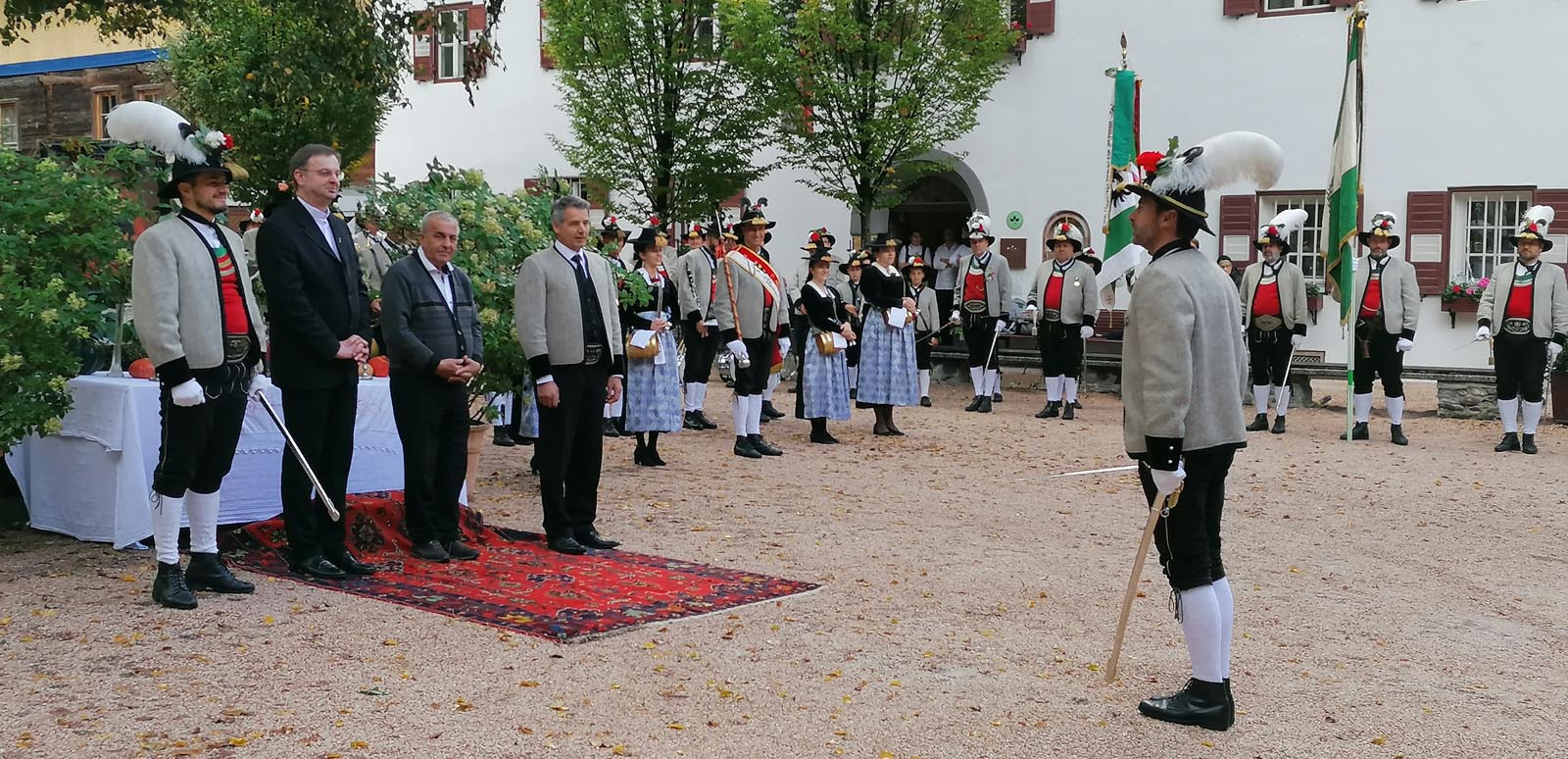 Pfarrer Proßegger segnete die Erntedankkrone, die heuer die Landjugend vom Stummerberg sehr schön gebunden hat. Leider konnte die Prozession nach Ahrnbach wegen des unsicheren Wetters nicht stattfinden. Nach dem Gottesdienst versammelte sich die Schützenkompanie am Lindeplatz zum Abschießen der Ehrensalven für Pfarrer und Bürgermeister.