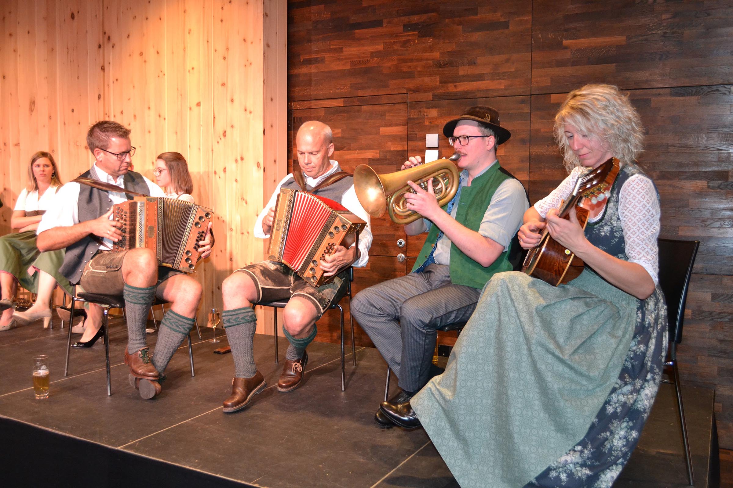 Die Leit’n Toni Musi beim Musizieren auf der Bühne .