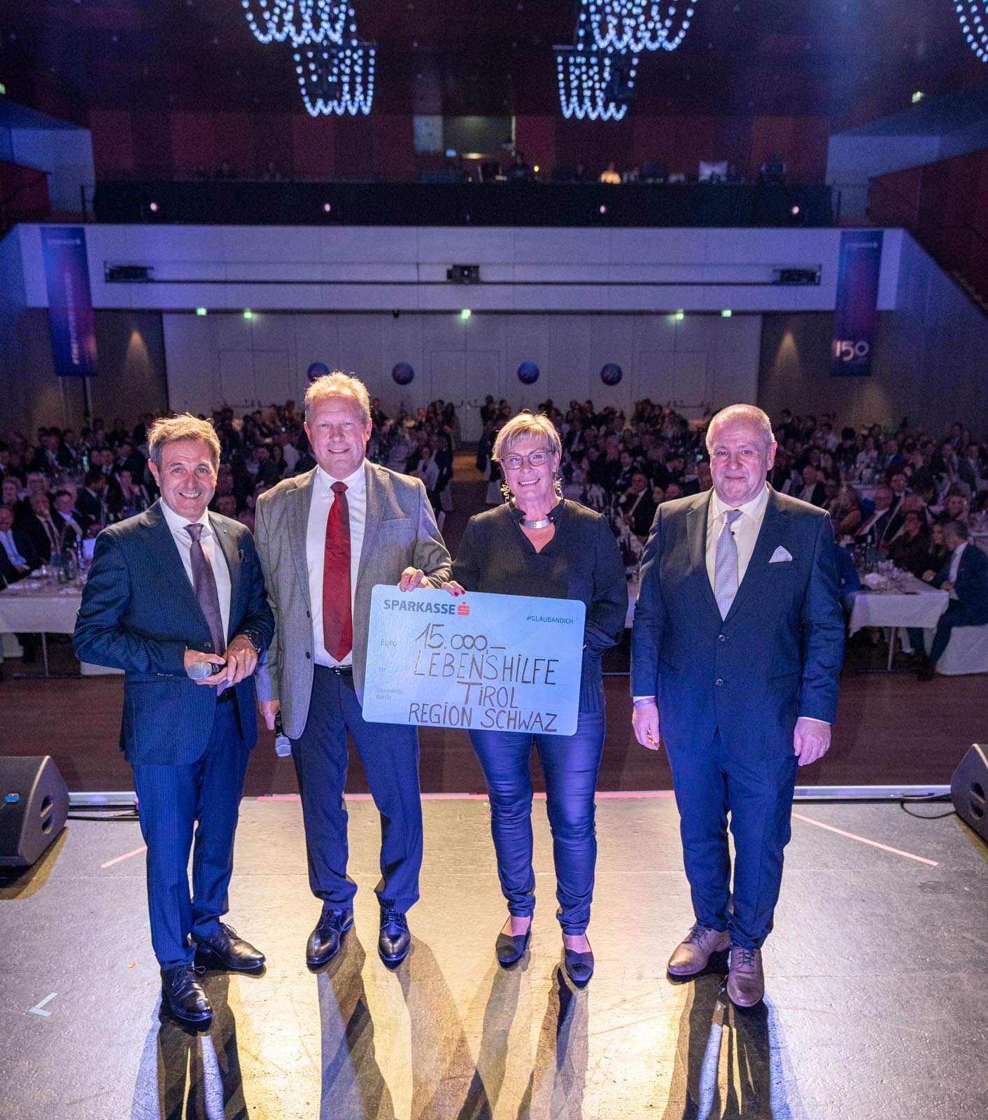 Das Engagment rund um das Gemeinwohl, dem die Sparkasse Schwaz seit ihrer Gründung Rechnung trägt, wurde auch an diesem Abend einmal mehr, stellvertretend für die vielen sozialen, kulturellen und infrastrukturelle Projekte im Bezirk, unter Beweis gestellt. Großzügige Spenden in der Gesamthöhe von 25.000,- Euro wurden an die Lebenshilfe Tirol (Bezirk Schwaz) sowie an das Franziskanerkloster Schwaz überreicht.