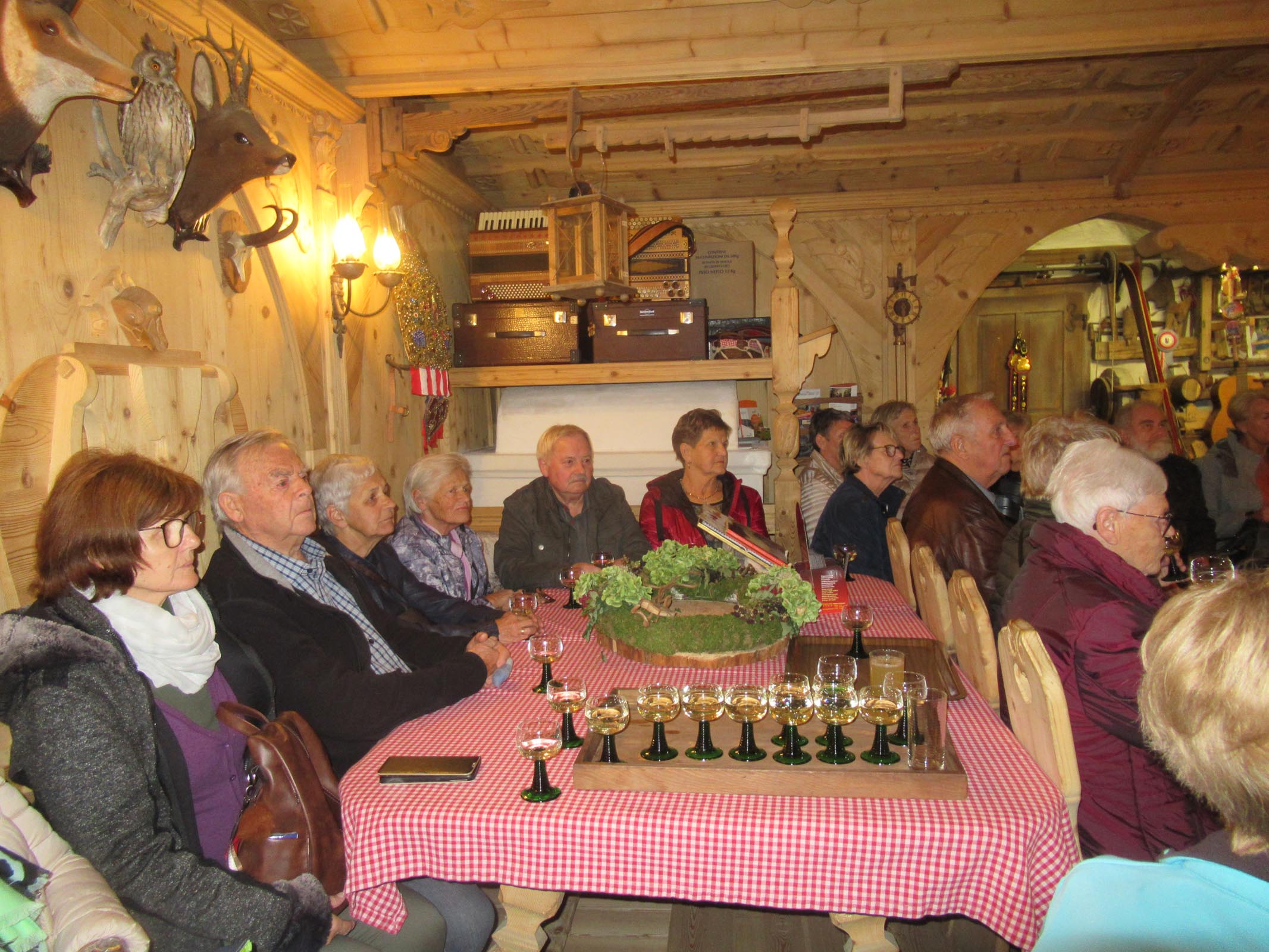In Luttach im Ahrntal besichtigten wir das Krippenmuseum, es war unbeschreiblich faszinierend und beeindruckend. Natürlich durfte ein Glasl Wein in der Zirbenstube nicht fehlen. Wir konnten auch dem Schnitzer in der Werkstatt zusehen, er hatte eine wilde Maske in Arbeit.