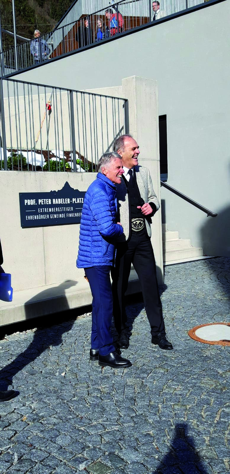Die Gemeinde Finkenberg und der Tourismusverband Tux/Finkenberg überraschten den Ehrenbürger und Jubilar Prof. Peter Habeler mit einem nachhaltigen Geschenk. Musikkapelle und Schützenkompanie, Gemeindevertreter und Ehrengäste begleiteten Peter Habeler zur Enthüllung der Ehrentafel