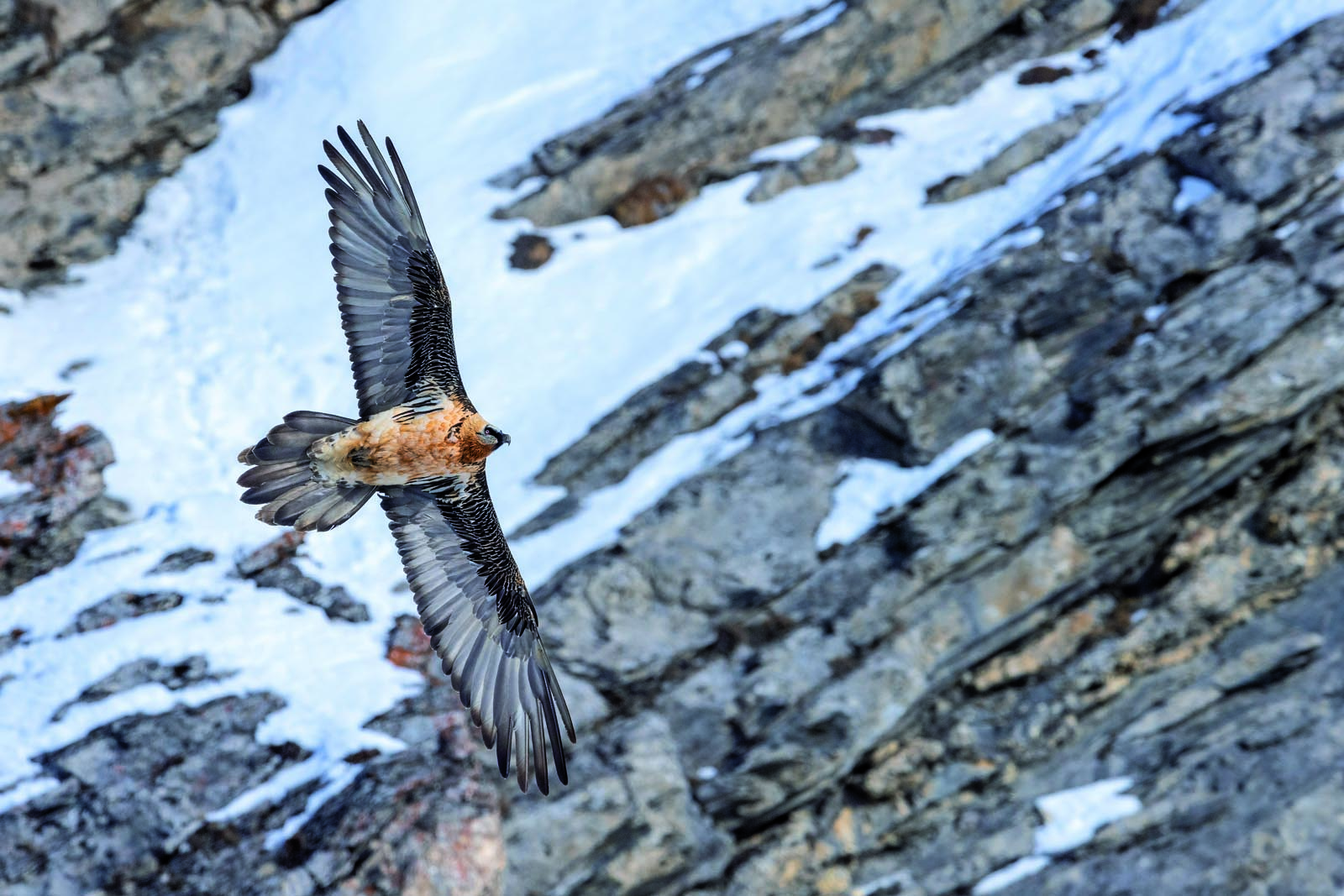 Keine Angst! Vorab sei gesagt, dass Bartgeier reine Aasfresser und völlig harmlos sind. Sie jagen und „reißen“ keine Tiere, 80 – 90 Prozent ihrer Nahrung bestehen aus Knochen. Gefürchtet als Lämmergeier, wurde der Bartgeier im 19. Jahrhundert bejagt, das vermeintlich letzte Exemplar wurde 1913 im italienischen Aostatal erlegt.