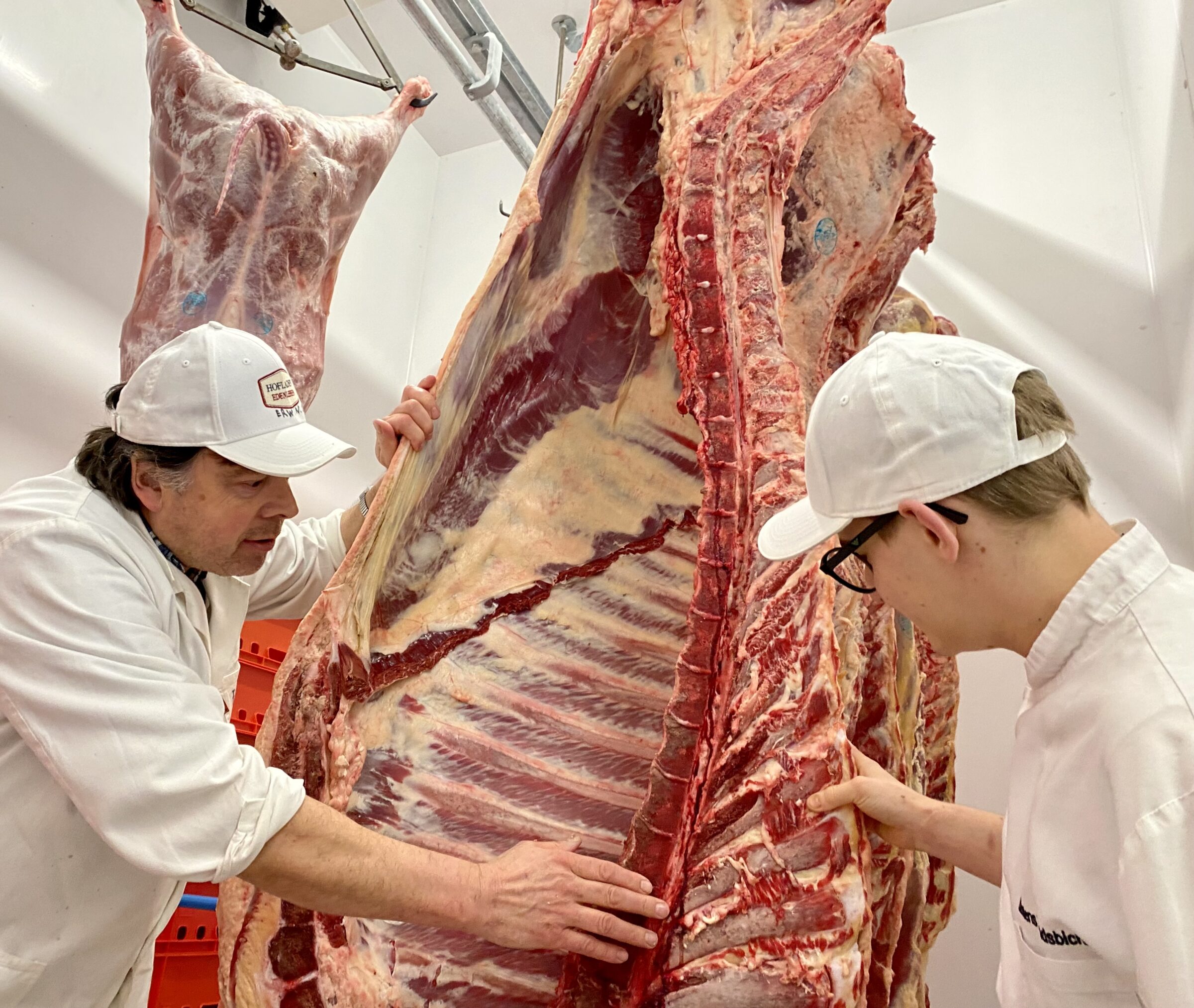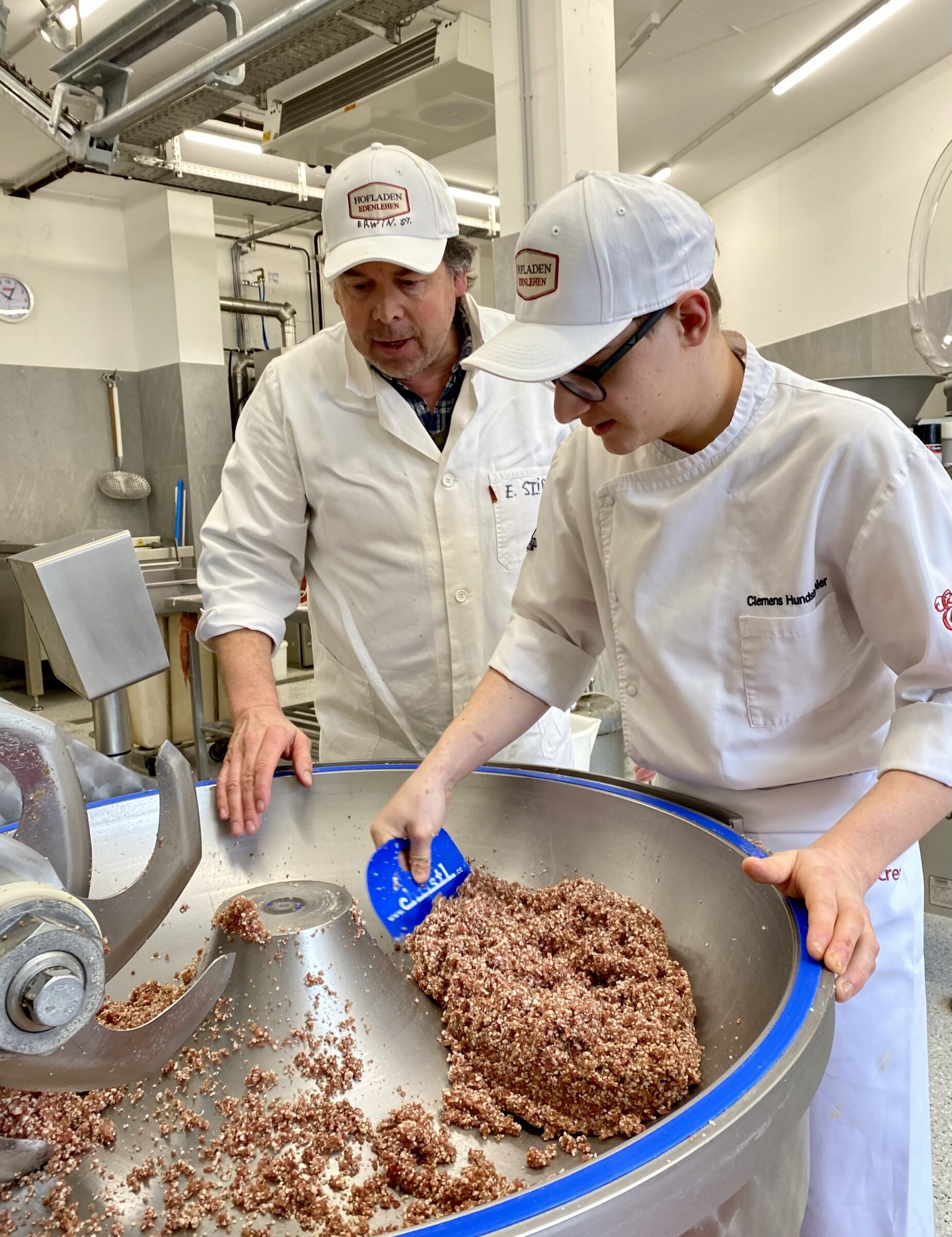 Aber das war es noch lange nicht. Nach so manchem lautstarken und motivierenden Song, der immer wieder mal von der Küchencrew während der Arbeit fröhlich angestimmt wird, bin ich auch immer wieder gerne in der Hofmetzgerei zu finden. Gerade dort hab ich von Erwin die elementaren Grundbegriffe und Fertigkeiten bei der Fleischzerlegung erlernt und ich kann euch eines sagen: „Es ist unheimlich interessant zu wissen, wie das funktioniert und man bekommt dadurch einen gewaltigen Bezug zu allen Produkten, die auf unserem Teller landen.“ Und das schönste an der Sache ist, dass unsere Gäste diese gelebte Regionalität und die ehrliche Arbeit vor Ort immer mehr zu schätzen wissen. Ich hab mir mit diesem Beruf meinen „ganz persönlichen Traum“ verwirklicht.