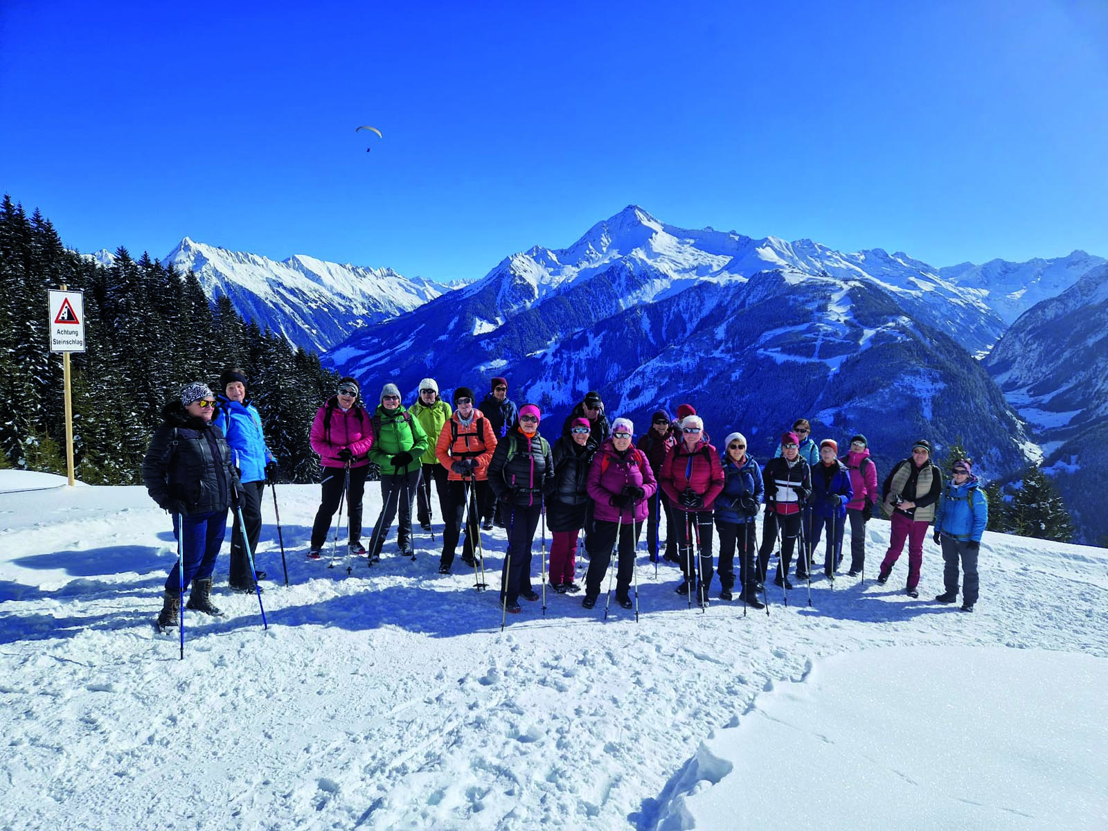 Sportlich ging es ab Schlitters über den Harterberg und Niederhart zur Almdiele. Es war eine sehr schöne Wanderung mit Ausblick über das Zillertal. Eine Wiederholung ist im Sommer geplant. Recht herausfordernd war die Schneeschuhwanderung am Gerlosstein, machte aber sehr viel Spaß. Endlich eine tolle Winterlandschaft, die wir bei herrlichem Sonnenschein in „Gerda’s Sonnenstüberl Arbiskogel genießen konnten. Heimvorteil genossen unsere treuen Mitglieder bei der perfekten Tour nach Innerböden. Im Gasthof „Zemmtal“ bei Romana haben wir die besten Kalbskoteletts genießen dürfen und einen netten Ausklang der Wanderung erlebt. Natürlich war es ein „Muss“, den Penken-Berg-Wald-Weg zu erkunden. Mit einigen Genusswanderern trafen wir uns am „Gschösswandhaus“ zur gemütlichen Einkehr.