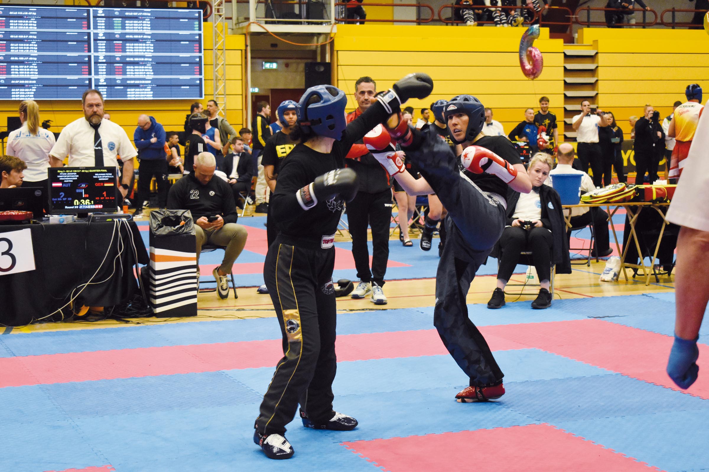 Jennifer Pfund (r.) mit einem Axekick gegen ihre deutsche Gegnerin im Viertelfinale.