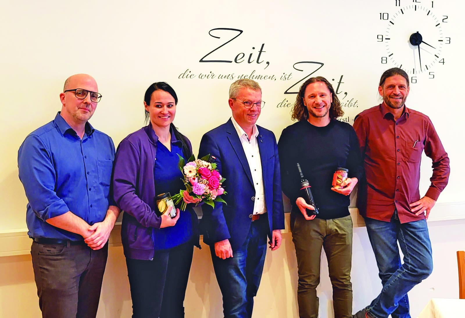 Mit einer kleinen Feier zum Einstand wurden die Beiden überrascht und im Beisein vieler MitarbeiterInnen sprachen die Geschäftsführer sowie der Stiftungsvorsitzende Bgm. Robert Pramstrahler nochmals ihren Dank und ihre guten Wünsche aus.