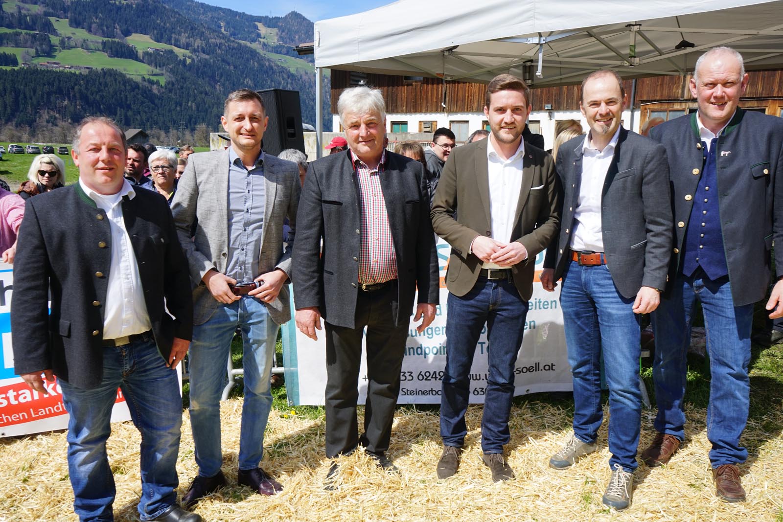 Josef Hechenberger und Thomas Schweigl, Obmann vom Braunviehzuchtverband Tirol sowie die Bürgermeister Dominik Mainusch (Fügen), Daniel Schweinberger (Hart) und Josef Unterweger (Fügenberg). ah