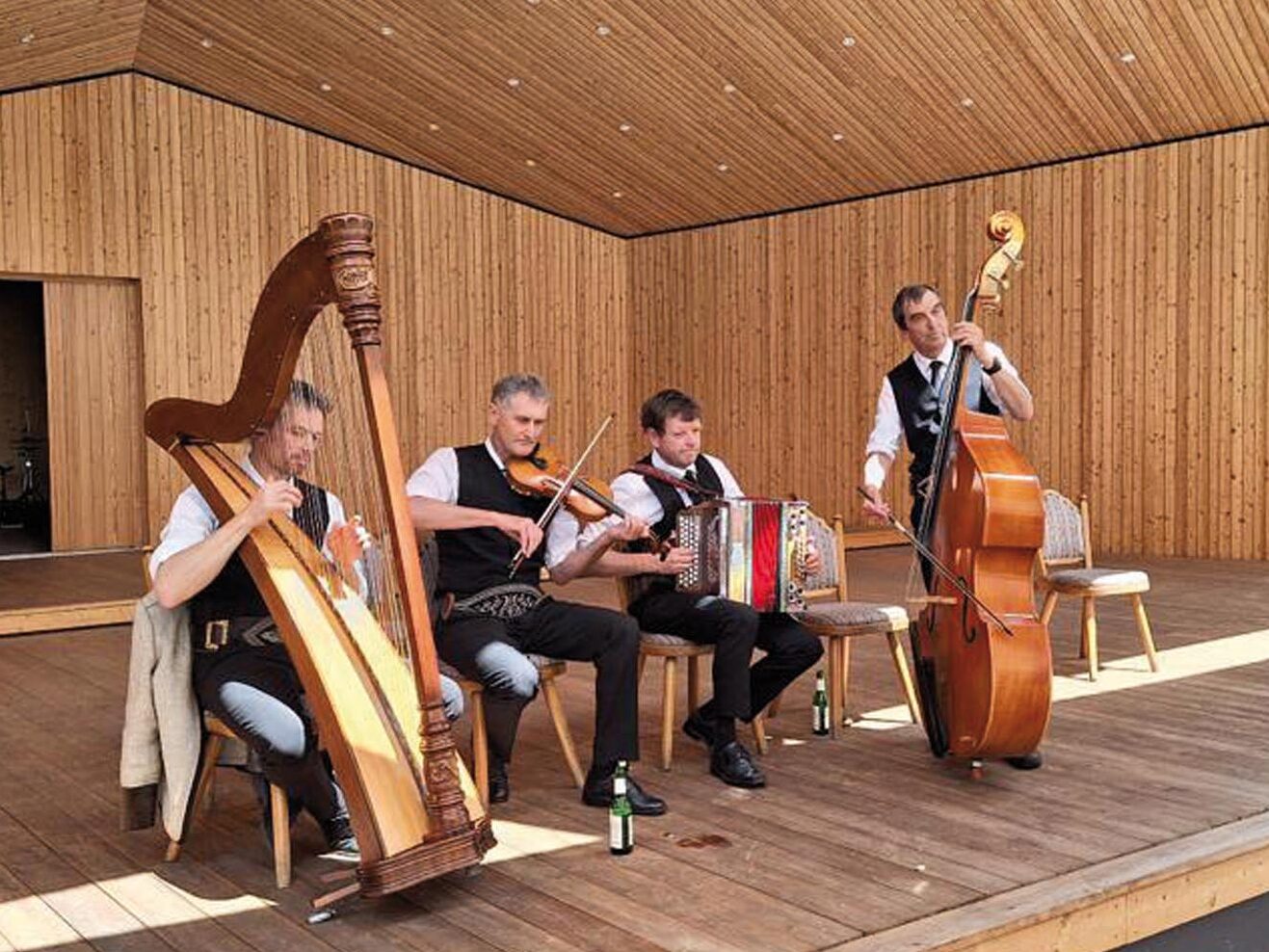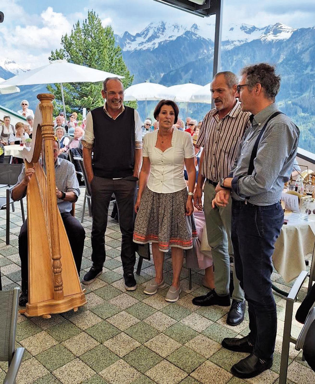 Astegg weiter. Dort warteten bereits die Familienmusik Egger-Strasser und viele weitere Sänger auf ihren Auftritt. Stefan Neussl (Obmannstellv. des TVM) moderierte mit seiner lockeren Art das Sängertreffen. Als Gesangsgruppe mischten sich noch der Oberauer Viergesang, die Brüder Dengg, der Bachhäusl Dreigesang und eine Abordnung des Männerchors Mayrhofen zusätzlich unter die Mitwirkenden. Es wurde ein wunderbarer musikantischer Nachmittag mit einem sehr aufmerksamen Publikum, das beim zweistündigen Konzert mucksmäuschenstill blieb.
