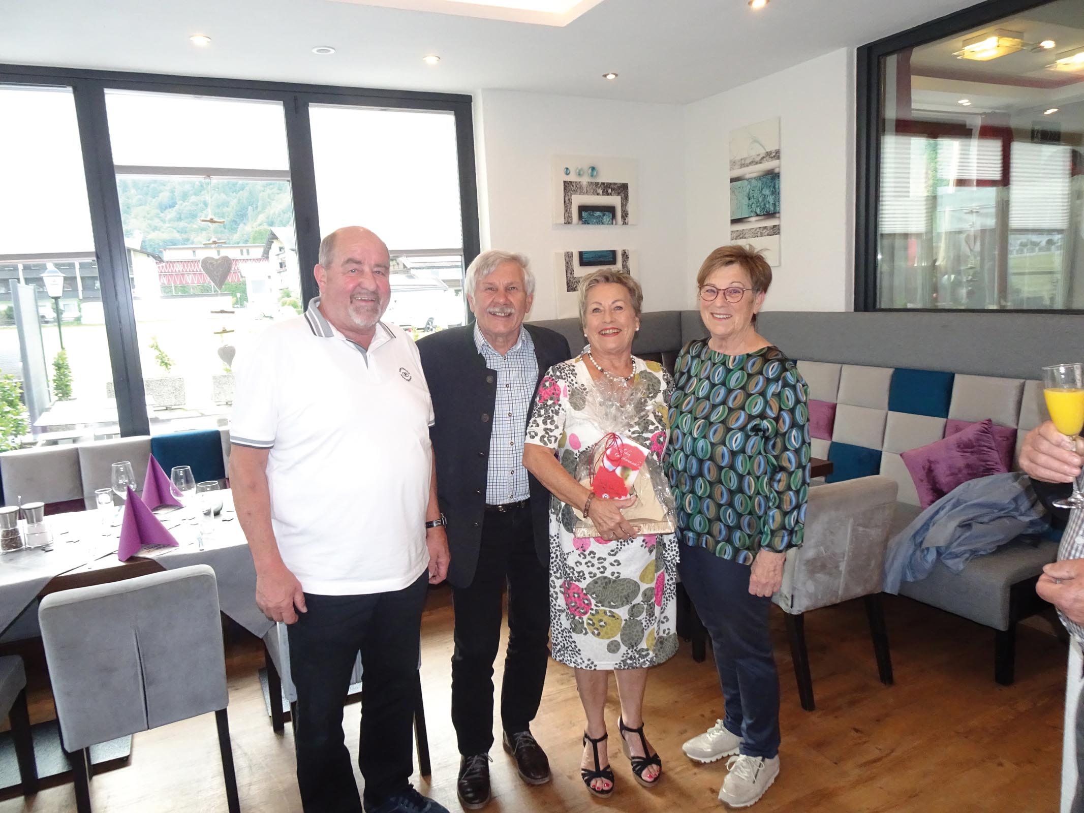 Bild: Musikant Konrad Sattler, Obmann Karl Platzer, Jubilarin Gretl Gruber und Helga Bampi.
