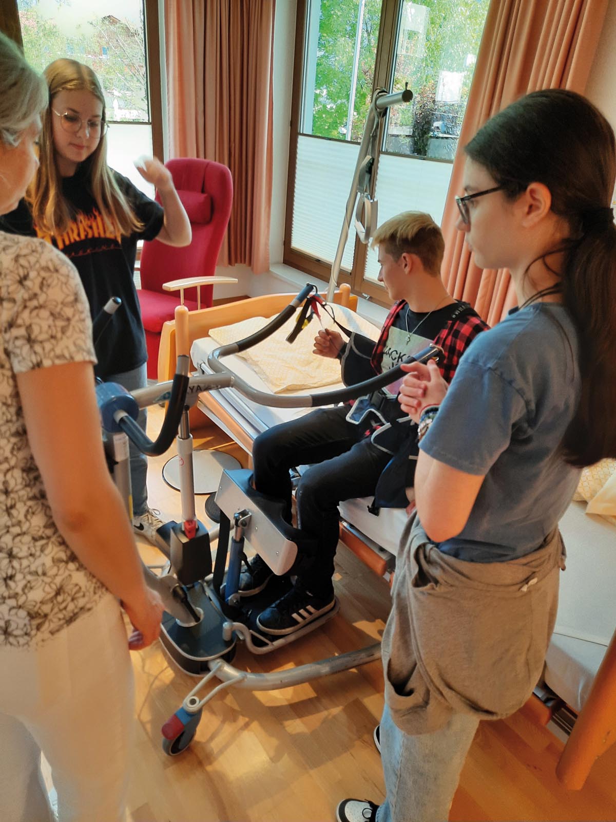 Mit großem Interesse wurden die SchülerInnen in die Theorie und Praxis der Pflegewissenschaften eingeführt. Zusätzlich erhielten sie wertvolle Informationen zu den Pflegeberufen, aber auch zu den anderen Berufsgruppen, die in einem Heim tätig sind.