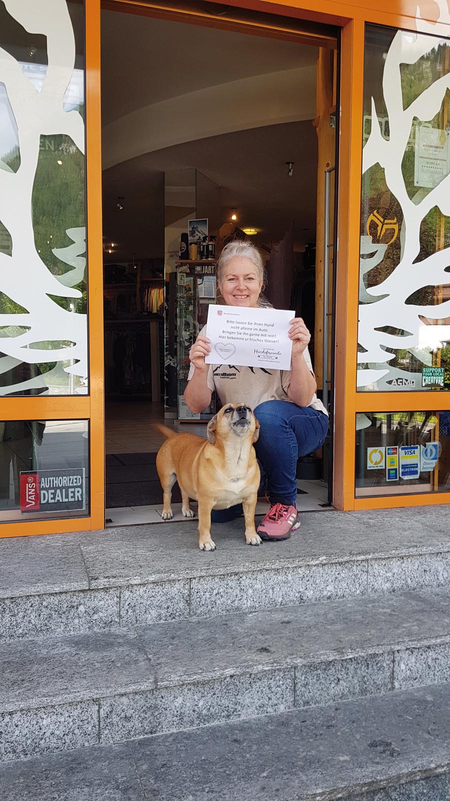 Viele Geschäfte und Restaurants bieten schon an, den Hund mit in den Laden zu nehmen und stellen Wasserschüsseln bereit. Um diese Initiative von Ladenbesitzern und Gastwirten zu unterstützen, hat der Verein Hundefreunde Zillertal, die Aktion „Hitzefrei für Vierbeiner“ ins Leben gerufen. Wir laden alle Ladeninhaber und Gastwirte im Zillertal ein, sich an der Aktion „Hitzefrei für Vierbeiner“ zu beteiligen.