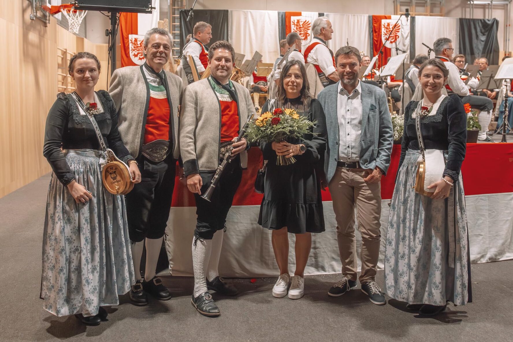 Die Moderatoren Theresa Kammerlander und Fabian Kammerlander führten wieder charmant durchs Programm. Die musikalische Leitung lag wie gewohnt in den Händen von Kapellmeister Wolfgang Wegscheider. Auch in diesem Jahr wählte er gewissenhaft die Musikstücke aus und so wurde dem Publikum ein abwechslungsreiches Programm mit Stücken aus verschiedensten Ländern geboten.