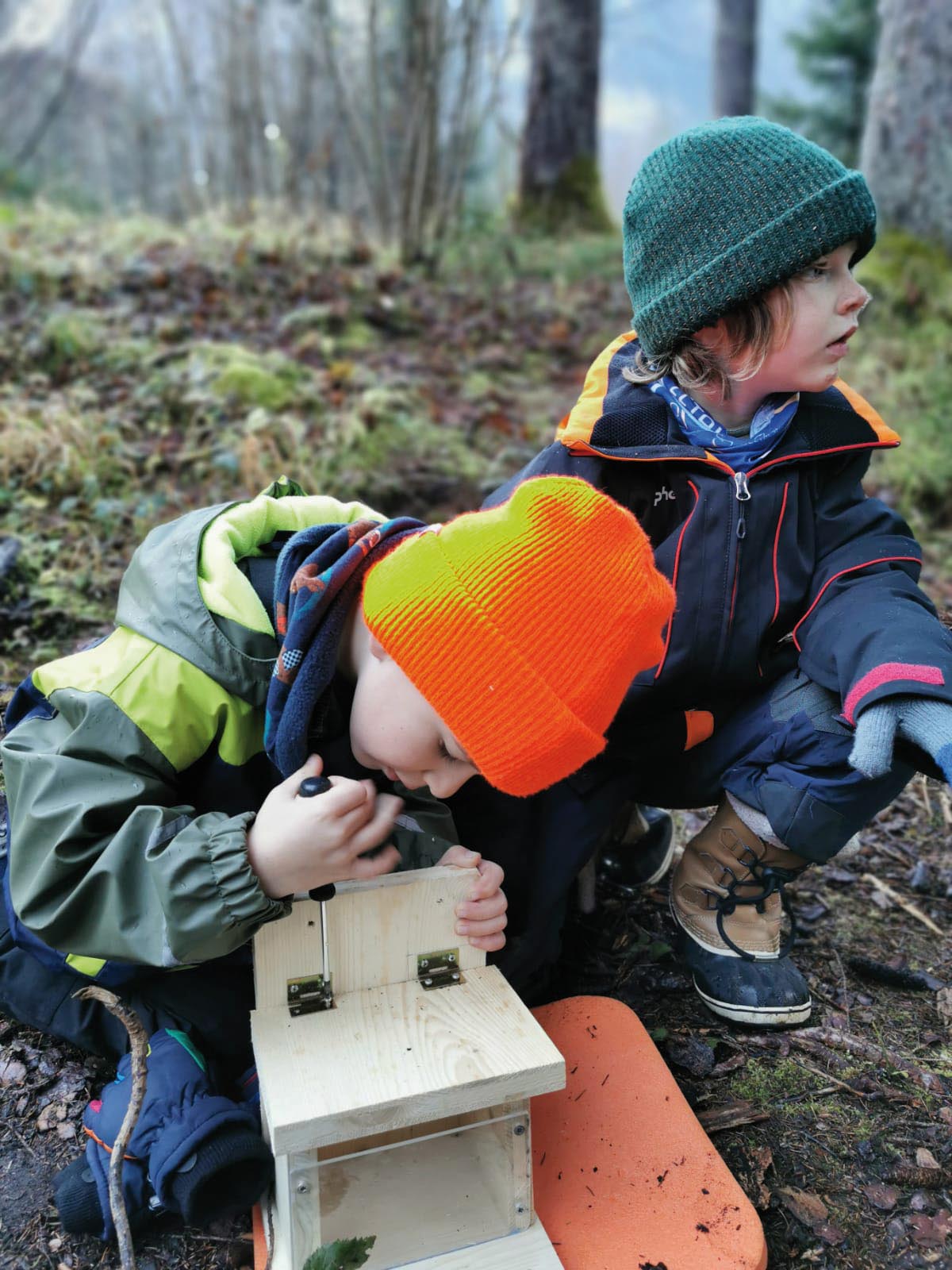 Seit einem Jahr treffen wir uns einmal wöchentlich und dürfen den Wandel der Jahreszeiten hautnah erleben. In unserem schönen Scheulingwald gibt es bei jedem Wetter viel zu entdecken. Wir beobachten im Frühling das Erwachen der Natur. Bäume bekommen neue Triebe, Pflanzen wachsen und auch die klitzekleinen und etwas größeren Tiere kommen aus ihren Verstecken und freuen sich über die Schätze des Frühlings. Der Wald wird mit der Zeit immer dichter und dichter. Dadurch sind wir bei Regen gut geschützt und auch bei großer Hitze im Sommer finden wir im Wald einige schattige und kühle Plätze. Das Pflanzen- und Baumwachstum verwandelt den Wald in einen ganz besonderen geheimnisvollen Platz und bietet den Kindern viele tolle Möglichkeiten zum Verstecken. Ihre Fantasie wird angeregt und lässt sie in die Welt von Feen und guten Waldgeistern eintauchen. Der Wald schenkt uns viele Materialien, mit denen tollste Bau- und Kunstwerke entstehen. Wichtig ist uns aber dabei, dass nur totes Holz verwendet wird und keine Pflanzen oder frische Äste abgerissen werden. Immer wieder lassen sich auch verschiedenste Tierspuren entdecken. Die Kinder lernen stetig dazu und werden dadurch zu wahren Waldexperten. Der Herbst ist eine ganz besondere Zeit. Der Wald zeigt sich in seinen wunderschönsten Farben und die Tiere nutzen die Gelegenheit, um Vorräte für den Winter zu sammeln. Wir genießen die letzten wärmenden Sonnenstrahlen, bevor wir gut ausgestattet den Wald in seinem Winterkleid erkunden. Es gibt vieles zu entdecken – Trittsiegel von Rehen und anderen Tieren werden durch den Schnee sichtbar gemacht. Wir gehen mit unserem Wald und seinen Bewohnern achtsam um und unterstützen die Vögel und Eichhörnchen mit dem Bau einer Futterkrippe, um gut über den Winter zu kommen. Es ist immer wieder spannend nachzusehen, ob die Tiere sich daraus bedient haben. Die Futterringe, die wir als Baumschmuck zur Weihnachtszeit anfertigen, werden von den Tieren innerhalb kürzester Zeit verputzt. Wir genießen das Eintreffen der ersten Sonnenstrahlen nach der kurzen Sonnenpause und freuen uns darüber, dass der Jahreskreislauf der Natur von Neuem beginnt.