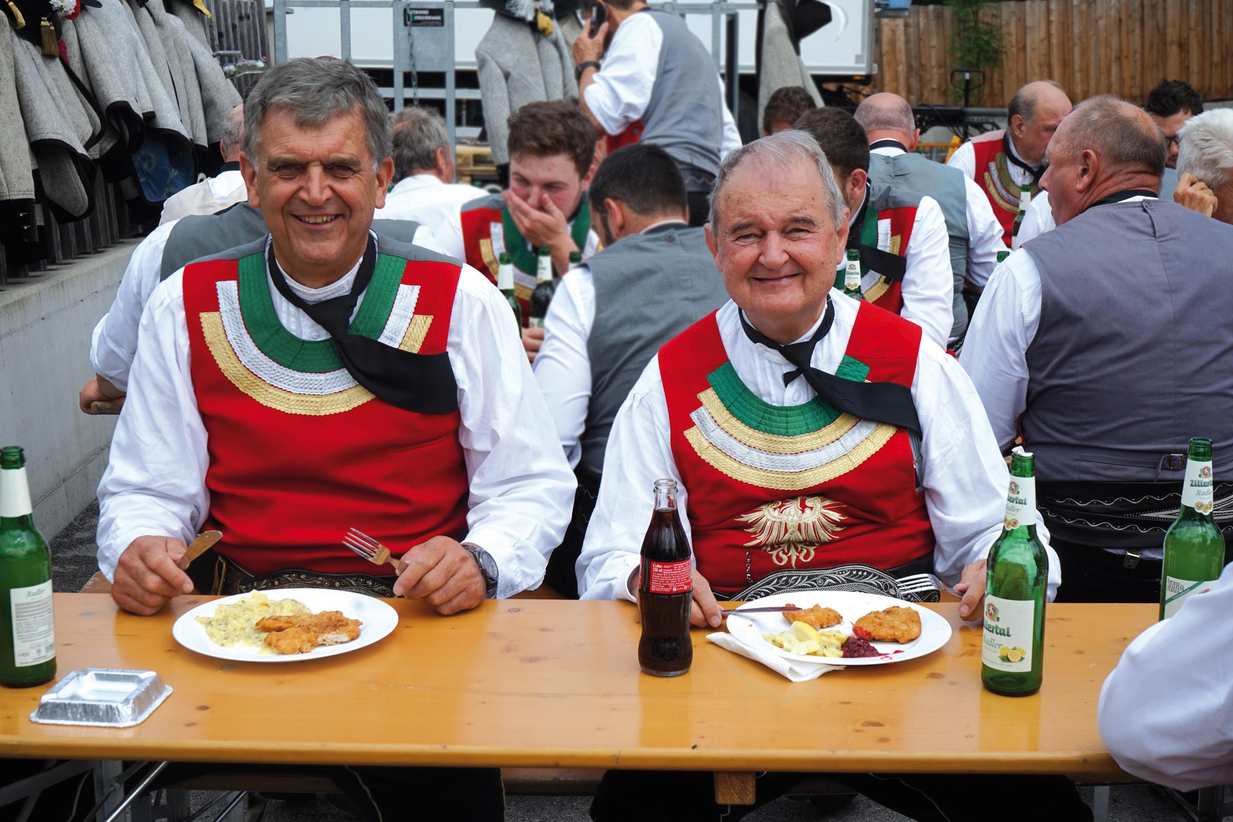 Nach dem Festgottesdienst in der Pfarrkirche in Ried – die Prozession musste wegen zweifelhaften Wetters abgesagt werden – marschierte die Kompanie, die von der Musikkapelle begleitet wurde, von Ried nach Kaltenbach, wo beim Musikpavillon der „Orig. Almrauschklang“ zum Tanz aufspielte und für Stimmung sorgte. Alles in allem ein gemütlichen Fest‘l, bei dem auch das Wetter mitspielte. ah
