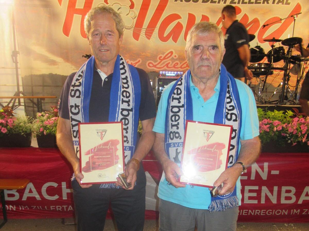 Die Goldene Ehrennadel des Tiroler Fußballverbandes erhielten Edi Wurm und Martin Hauser.