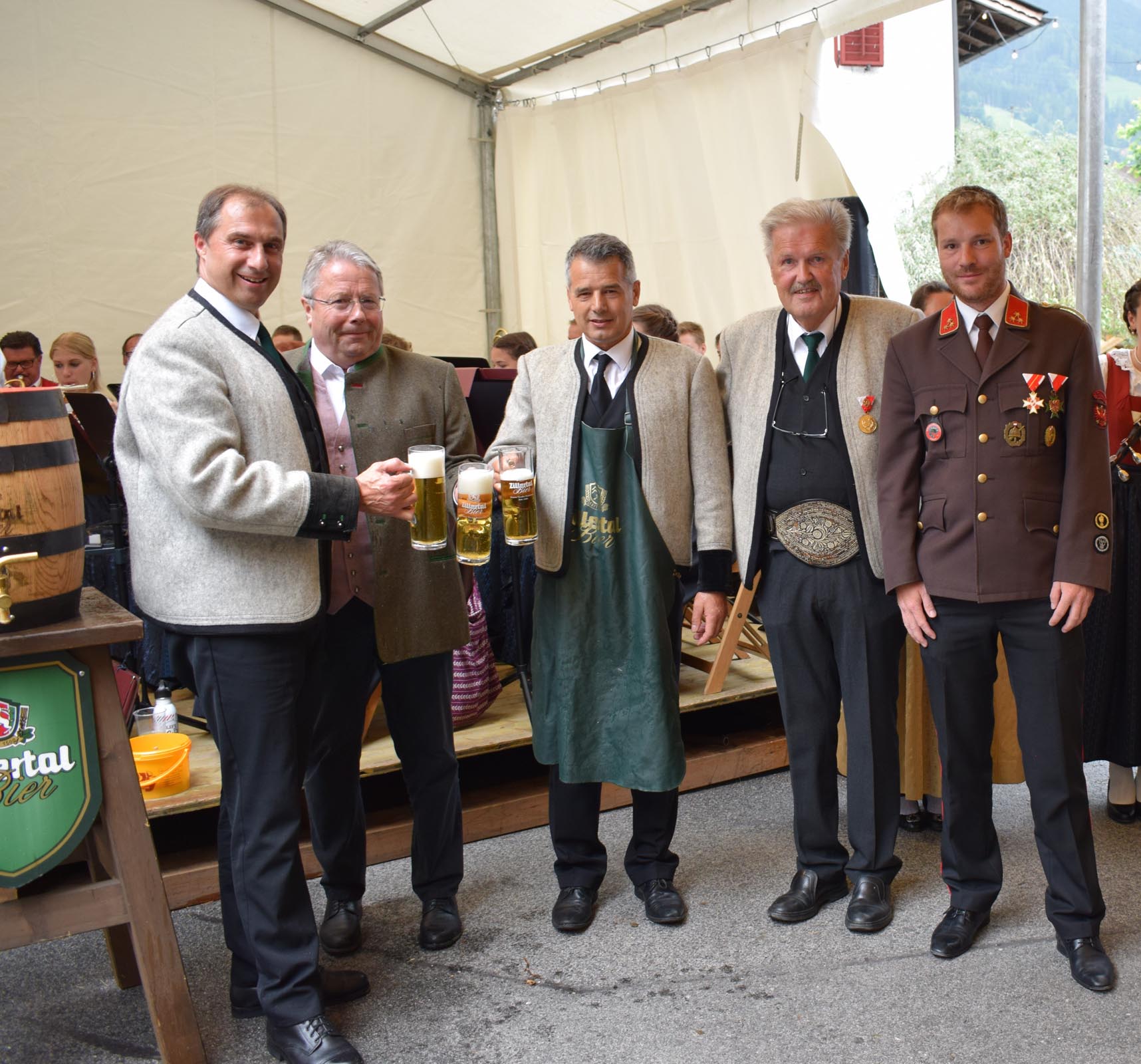 Nach gelungenem Bieranstich durch Bgm. Franz Kolb, unter Mithilfe von Nationalratsabgeordneten Franz Hörl, eröffnete die BMK Baumkirchen das Fest. Danach unterhielten DIE MÜHLBICHLER, gefolgt von HÖLLAWIND, die den Besuchern am Dorfplatz einheizten.