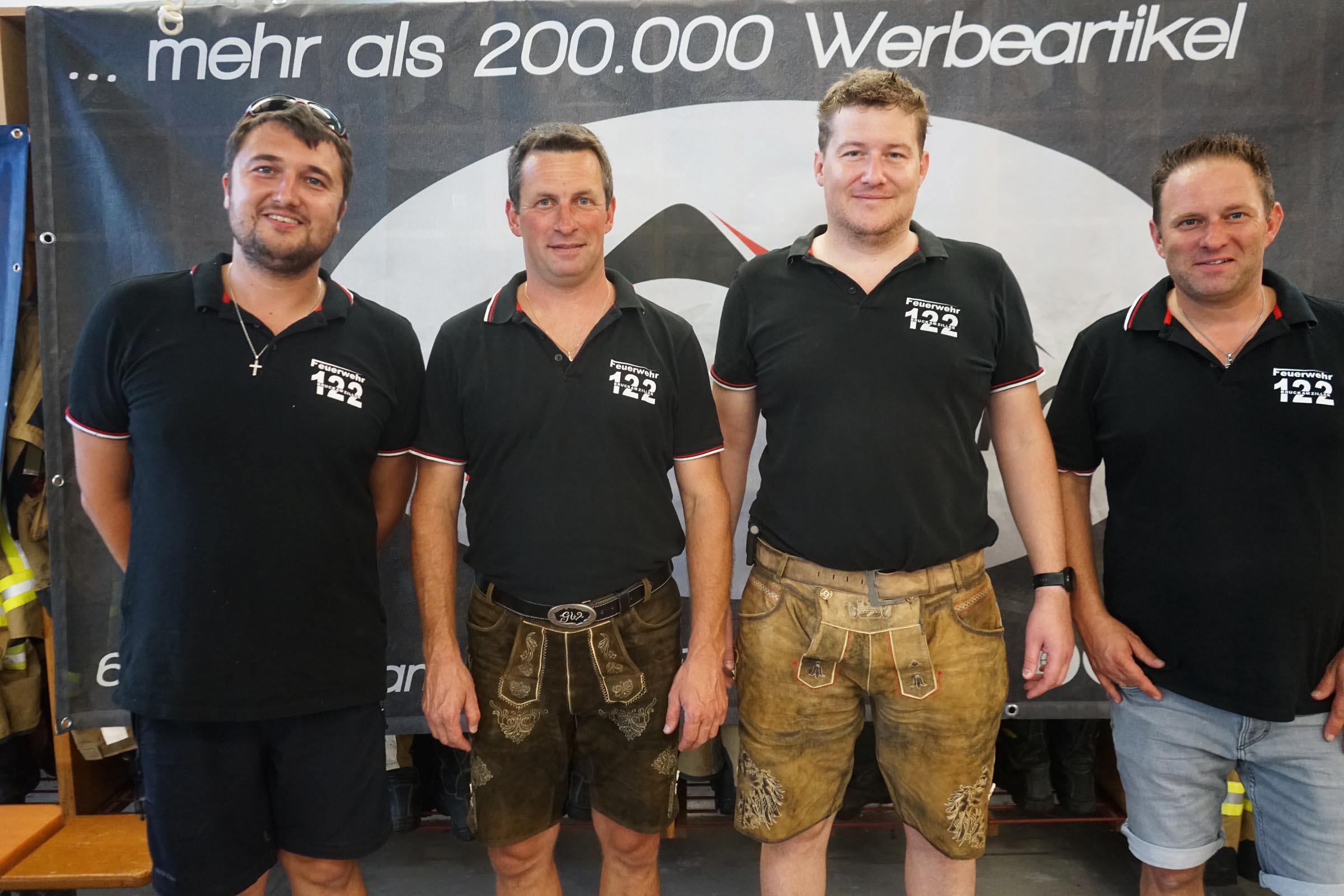 3) Feuerwehr-Kdt. Hannes Kircher (2.v.r.) mit seinem Stellvertreter Georg Wölfl (2.v.l.) und den beiden Feuerwehr-Kameraden Michael Wölfl und Lukas Erler.