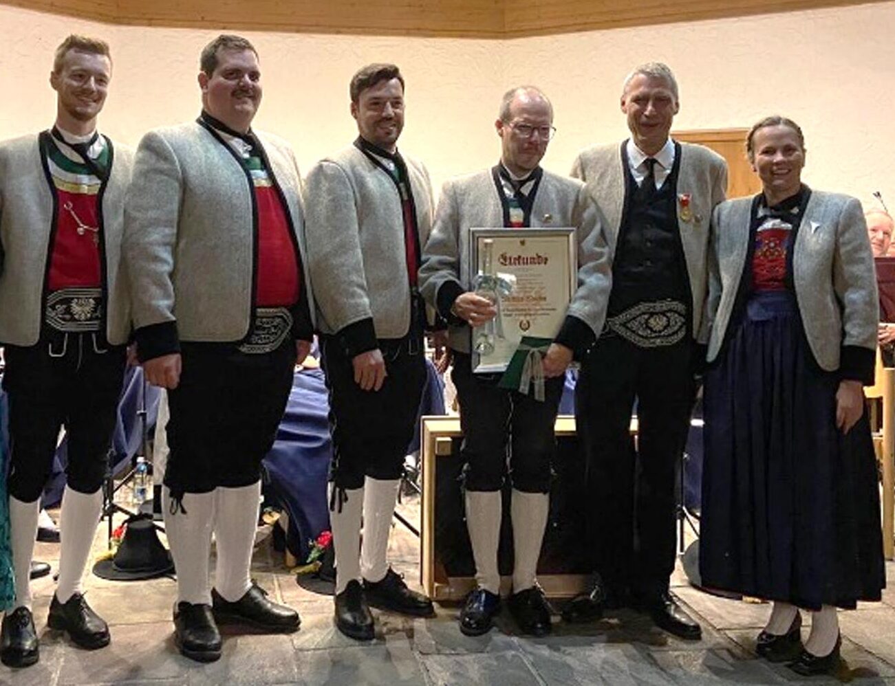 Für Speis und Trank sorgten die Ramsauer Bäuerinnen mit selbstgemachten Zillertaler Krapfen. In der Mitte des Konzertes durften Obmann Lukas Pfister und Kapellmeister Christoph Daigl gemeinsam mit Bürgermeister-Stellvertreter Josef Höllwarth und Vertreter des Blasmusikverbandes Gerhard Meister sowie Jugendreferentin Irene Hainz auch wieder den Nachwuchs ehren: Das Leistungsabzeichen Junior auf der Trompete bekamen Florian Kreidl und Josef Eberharter verliehen. Wir durften das Leistungsabzeichen in Bronze Leonhard Eberharter auf der Trompete sowie Max Hainz auf der Trompete und dem Schlagzeug überreichen. Max Hainz erzielte außerdem auch den ersten Preis bei Prima la Musica mit der Trompete. Von den „Großen“ durften wir Johannes Ebster am Tenorhorn zum Leistungsabzeichen in Bronze gratulieren. Kassier und Bassist Matthias Klausner wurde mit dem grünen Verdienstzeichen des Landesverbandes der Tiroler Blasmusikkapellen geehrt.