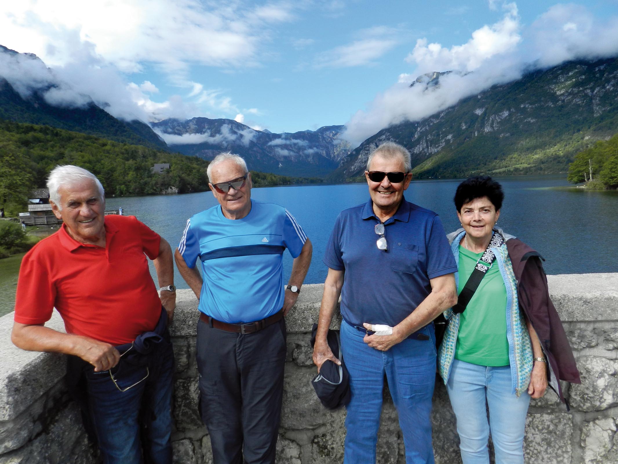 Am nächsten Tag fuhren wir nach Brezje. Dort besichtigten wir zuerst die „Maria-Hilf-Basilika“, das slowenische Nationalheiligtum. Weiter fuhren wir dann nach Bohinj zum Bohinjer See, einem wahren Naturjuwel. Die Kirche „Johannes des Täufers“ am Ufer des Sees beeindruckte besonders durch die mittelalterlichen Fresken. Dann fuhren wir zurück nach Bled, dem Schmuckstück der Julischen Alpen. Besonders auffallend ist die kleine Insel im smaragd-grünen Bleder See, auf der eine Marienkirche thront. Mit Plätten ließen wir uns zur Insel bringen und stiegen dann die 99 Stufen zum Kirchlein hinauf. Bei der Umwanderung der Insel hörten wir immer wieder die „Wunschglocke“ und hatten dabei einen traumhaften Ausblick auf die Burg von Bled und den See. Nach der Rückkehr aufs Festland hatten wir uns die berühmte Bleder Cremeschnitte wohl verdient.                                                                                      Am Mittwoch stand die slowenische Hauptstadt Ljubiljana (Laibach) auf dem Programm. Andrea verstand es, uns „ihre“ Hauptstadt ans Herz zu legen. Von den Pfahlbauten, den Kelten, den Römern, den Völkerwanderungen, vom Kaisertum Österreich, den unseligen Kriegen, vom Titoregime bis zur Republik Slowenien spannte sich ihr Erzählbogen. Den Brunnen der 3 Krainer Flüsse, das Rathaus, der Dom St.Nikolaus, die Franziskanerkirche, die Drachenbrücke, der Preserenplatz sind uns nun keine Unbekannten mehr. Am Nachmittag machten wir eine Bootsfahrt auf dem Fluss Ljubljanica, der seit den Unwettern der Vergangenheit immer noch lehmig braun dahinfließt. Wir wurden an den canale grande in Venedig erinnert, so rege war da der Schiffsverkehr. Wir konnten so noch die Hauptstadt von der Flussperspektive aus bewundern. Auf den Schlossberg fuhren wir dann bei einem Zwischenstopp am Donnerstag mit dem Schrägaufzug hinauf. Von den Burgmauern aus hatten wir die schönsten Ausblicke auf das slowenische Laibach. Am letzten Ausflugstag gings nach Novo Mesto. Wir unternahmen eine Floßfahrt auf dem Fluss Krka. Auf dem Floß wurde uns ein traditionelles Essen serviert, während wir in launiger Art die Geschichte der Stadt kennen lernten. Der typische Wein der Unterkrainer Region, der „Cvicek“ ließ uns sogar auf slowenisch „zwitschern“. Die herrliche Flusslandschaft werden wir nie vergessen!