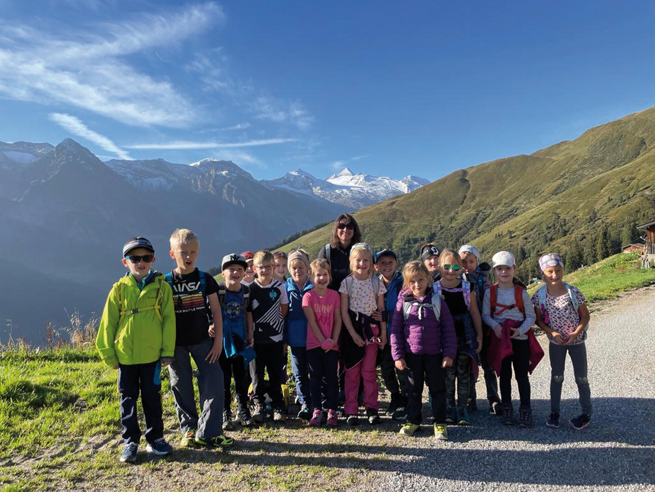 Bei wunderschönem Herbstwetter machte sich die 1. Klasse mit der Eggalmbahn auf den Weg zum Erlebnisspielplatz „Almspielerei“. Die 2. Klasse machte einen Ausflug mit der Finkenberger Almbahn zum Speicherteich „Penkenjoch“, wo sie auch den Penken Pepi und den Kletter- und Balancierparcour besuchte. Die Klassen 3a und 3b fuhren ebenfalls mit der Finkenberger Almbahn bis zur Mittelstation und wanderten durch den Moorlehrpfad nach Tux bis zur Volksschule zurück. Die 4. Klasse wanderte zur Schrofenalm und lernte Interessantes über das ehemalige Magnesitbergwerk.