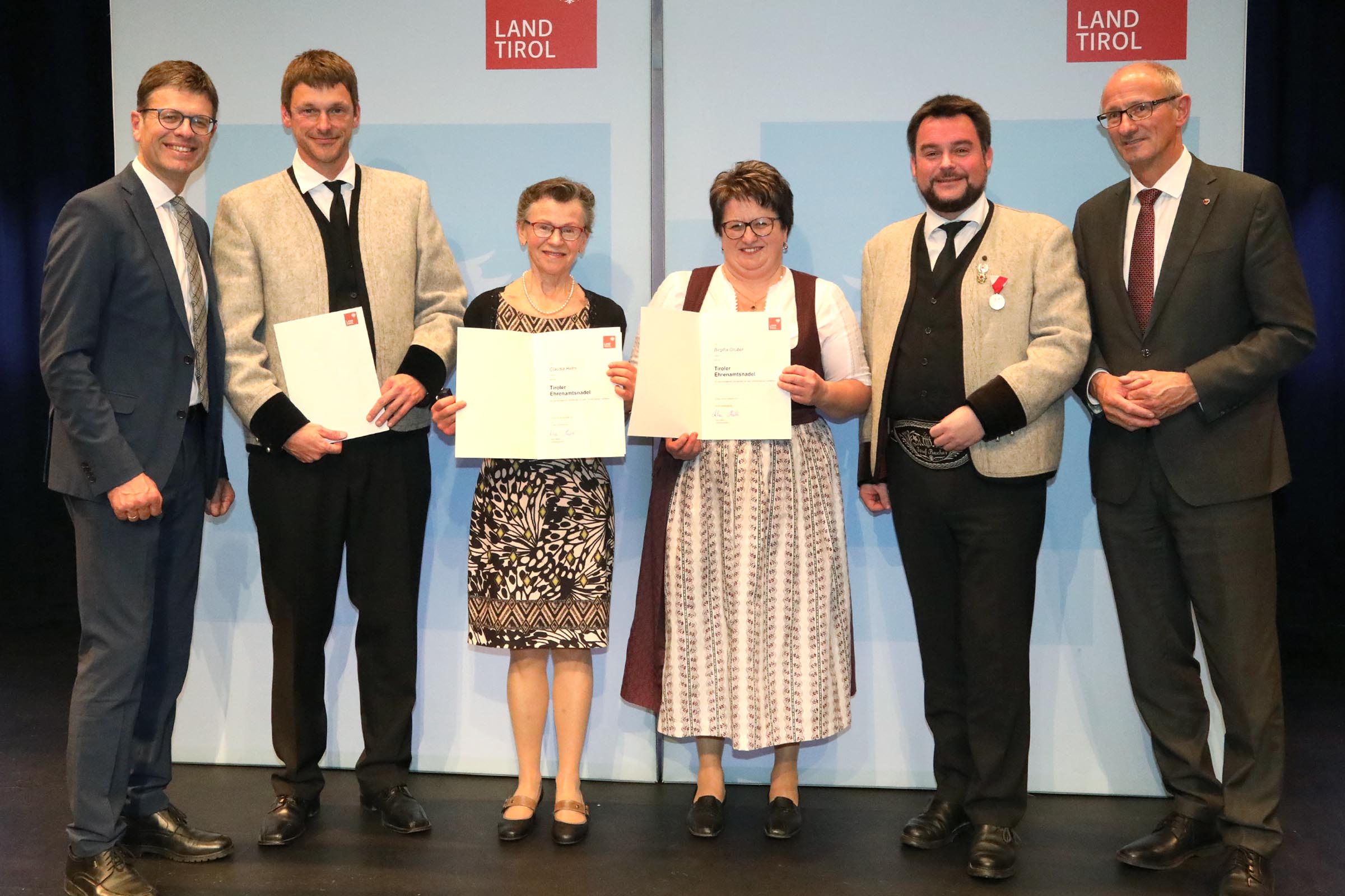 Gemeinde Mayrhofen: Frau Aloisia Eberl für Verdienste um die katholische Kirche; Herr Markus Eder für Verdienste um das Feuerwehrwesen und die Blasmusik; Frau Erika Gredler für Verdienste um das Sozialwesen; Herr Gebhard Klotz für Verdienste um das Feuerwehrwesen.
