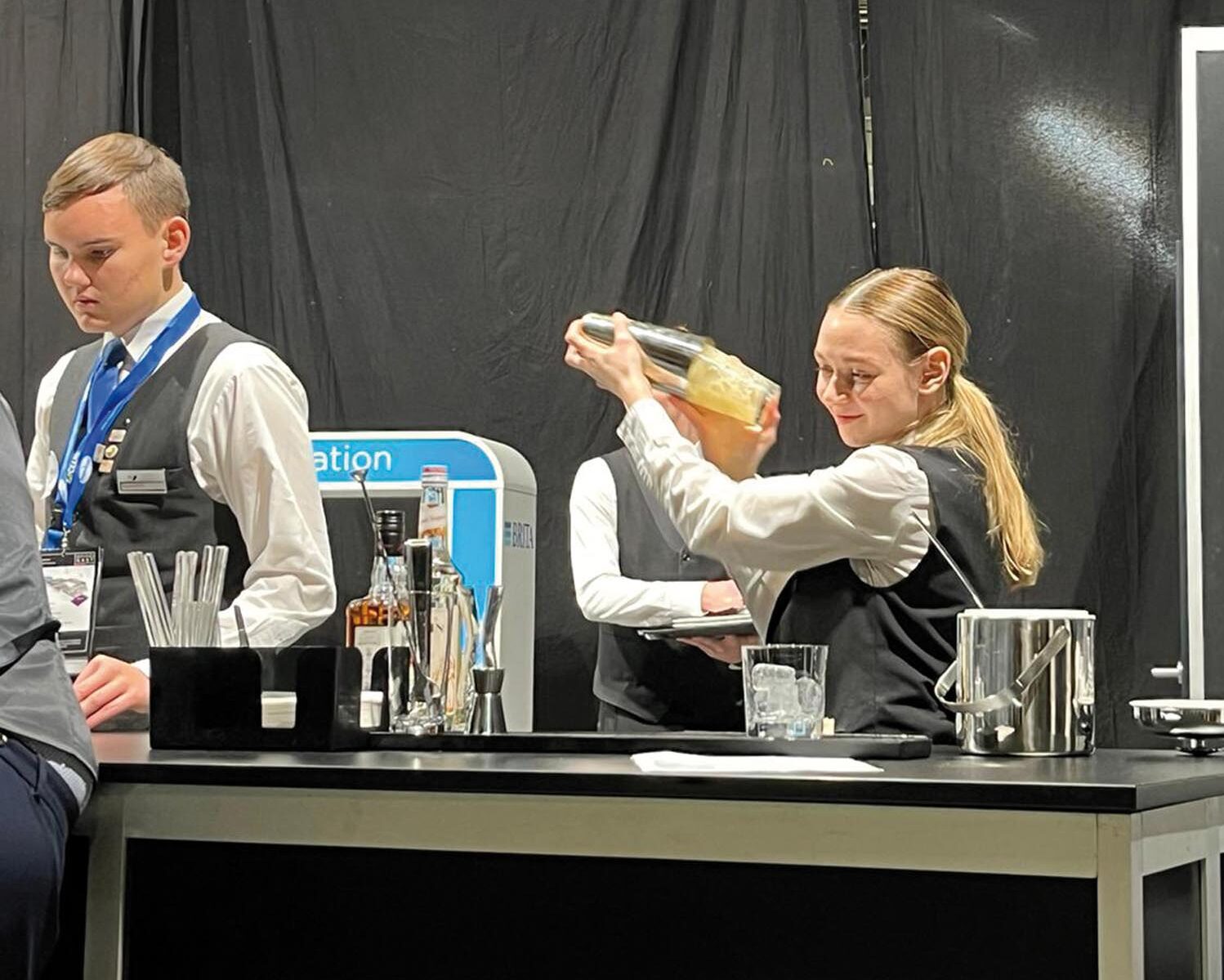 Die Schülerin Nele Wagner sowie der Schüler Andreas Mauracher aus der Klasse 4HLTb konnten hervorragende Ergebnisse erzielen und viele wertvolle Erfahrungen für ihre weitere berufliche Laufbahn sammeln. Unterstützt wurden diese bei der Competition von der Ersatzkandidatin Lina Pirpamer und von ihrem Klassenvorstand beziehungsweise Ausbildner FL Christoph Gredler BEd. Zu den Aufgaben des Wettbewerbes gehörten unter anderem ein 30-minütiger Wissenstest, die Zubereitung eines Standarddrinks, ein Interview über Fach- und Getränkekunde sowie die Zubereitung einer alkoholfreien Eigenkreation.