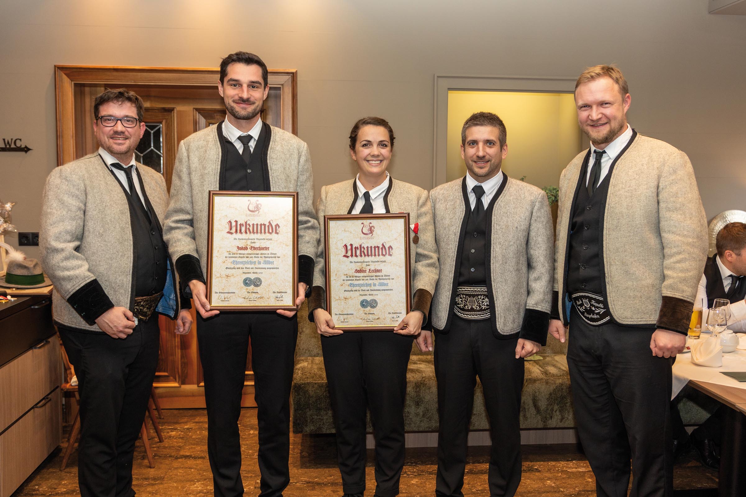 Die Marktgemeinde Mayrhofen – vertreten durch Bürgermeister Hans Jörg Moigg und Kulturreferentin Burgi Huber – übergab unserem Obmann und Bassisten Andreas Schmid das Kulturehrenzeichen der Marktgemeinde Mayrhofen (27 Jahre Mitgliedschaft BMK Mayrhofen), verlieh unserem Tenorhornisten Andreas Walder die Verdienstmedaille und unserem Saxophonisten Fritz Moroder das Verdienstzeichen der Marktgemeinde Mayrhofen für ihre 33-jährigen Verdienste um die Bundesmusikkapelle Mayrhofen und für die kulturelle Tätigkeit in der Marktgemeinde Mayrhofen.