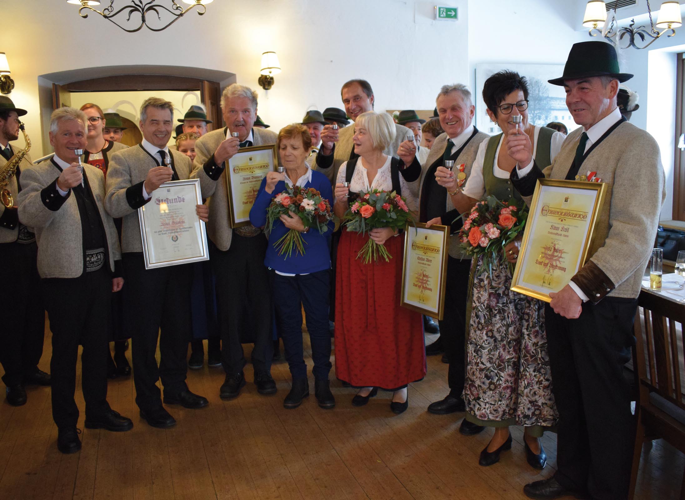 Bei der Jahreshauptversammlung galt es langjährige Mitglieder zu ehren: Für 55 Jahre Christian Wierer und Anton Brandner und für 50 Jahre Klaus Kröll.