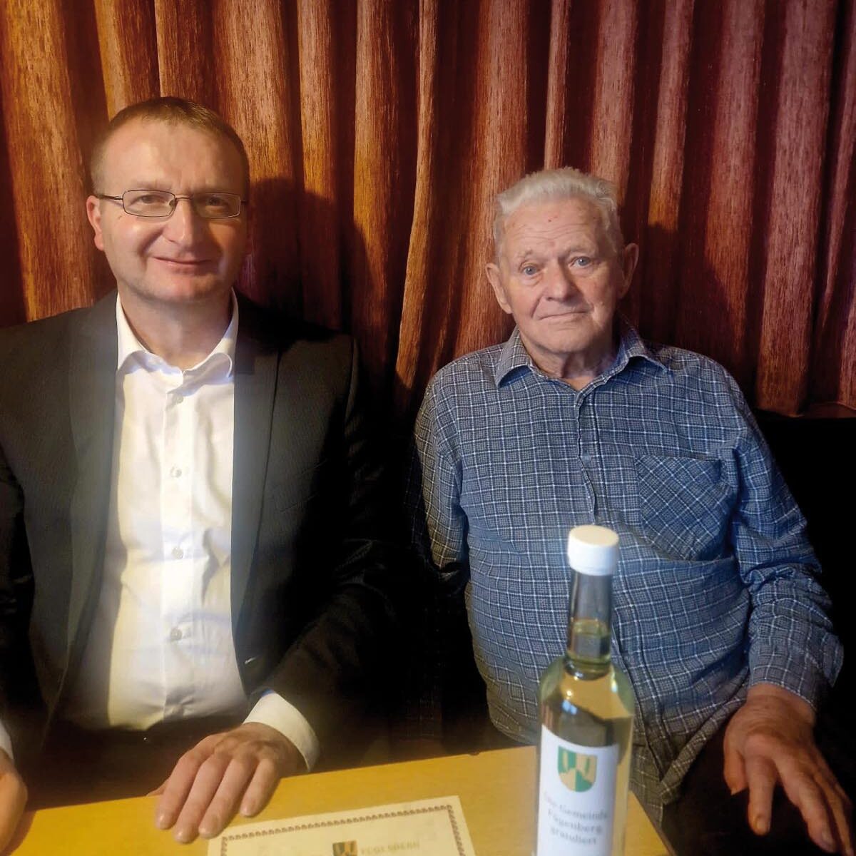 Bürgermeister Ing. Josef Unterweger überbrachte den beiden Jubilaren die Glückwünsche der Gemeinde Fügenberg.