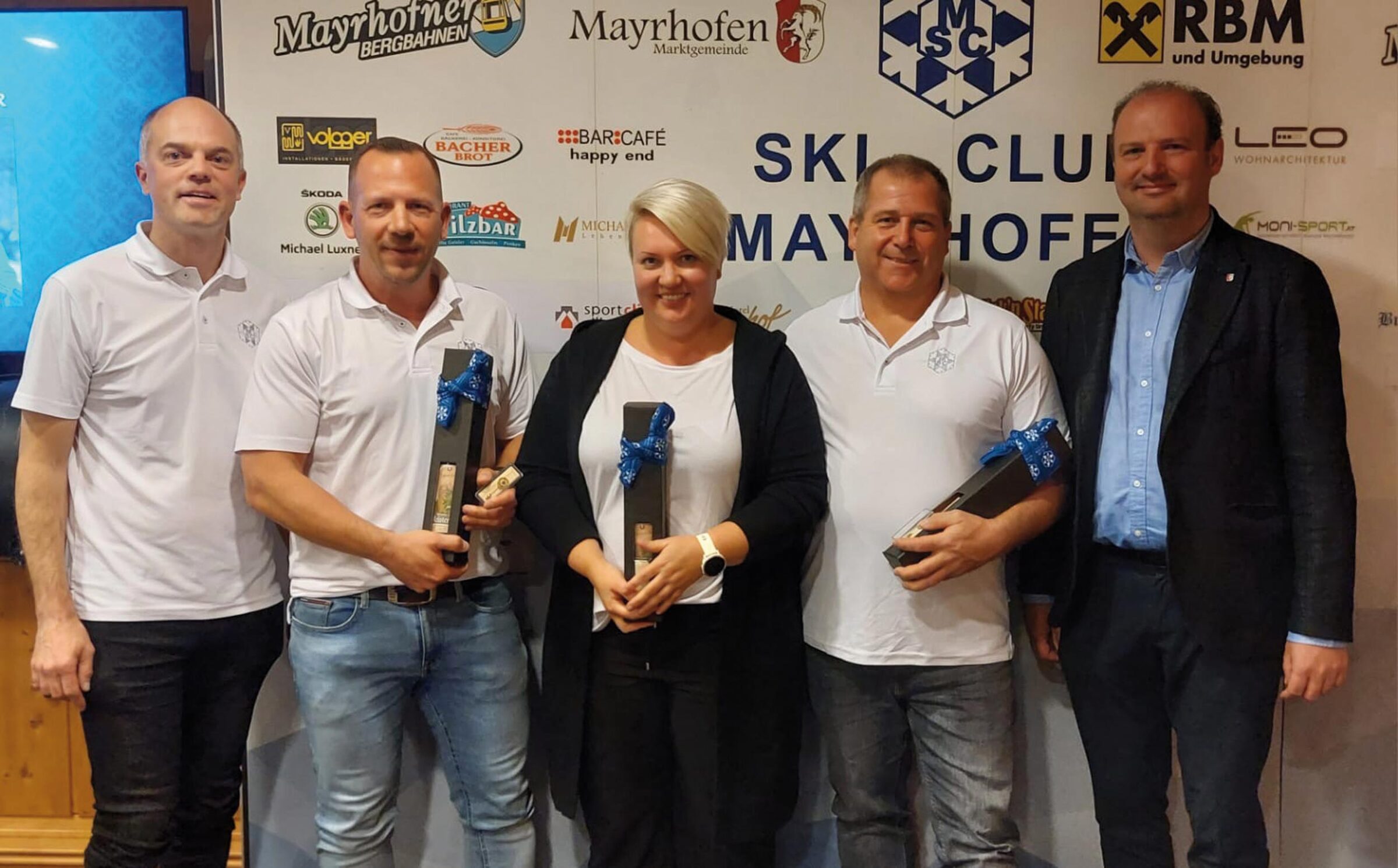 Für ihre langjährigen Tätigkeiten als Funktionäre im Ausschuss, Vorstand und Training wurden Sektionsleiterin Alpin Moni Wechselberger, Kassier Richard Hofer und Obmann Joe Wechselberger mit dem Goldenen SCM-Ehrenzeichen geehrt.