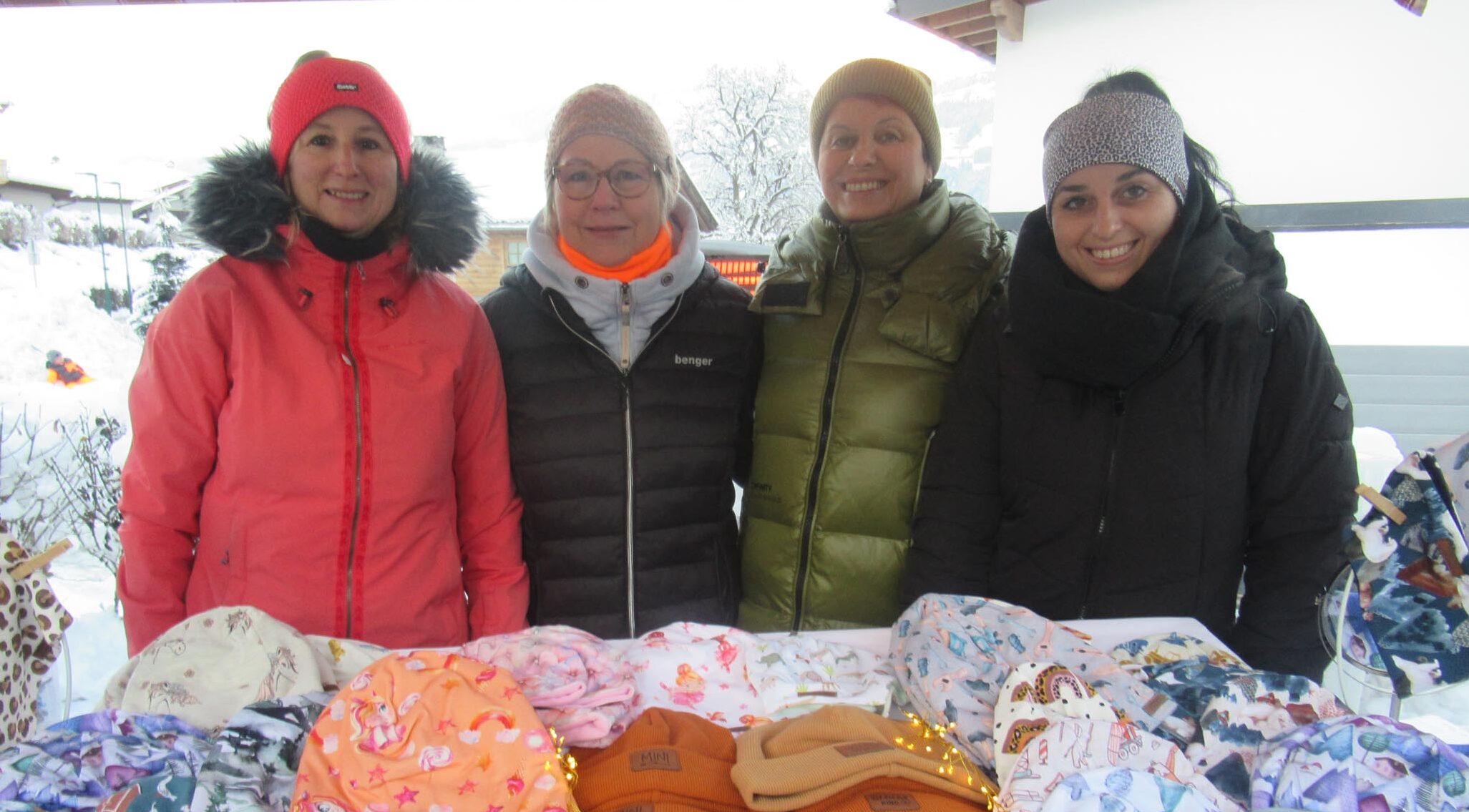 Verschiedene Stände mit Keksen, Nähsachen, Mützen, Doggln und Holzdeko verbreiteten vorweihnachtliches Flair. Gut gekleidet trotzten die zahlreichen Besucher den eisigen Temperaturen. Wozu gibt es Glühwein und heißen Tee?!