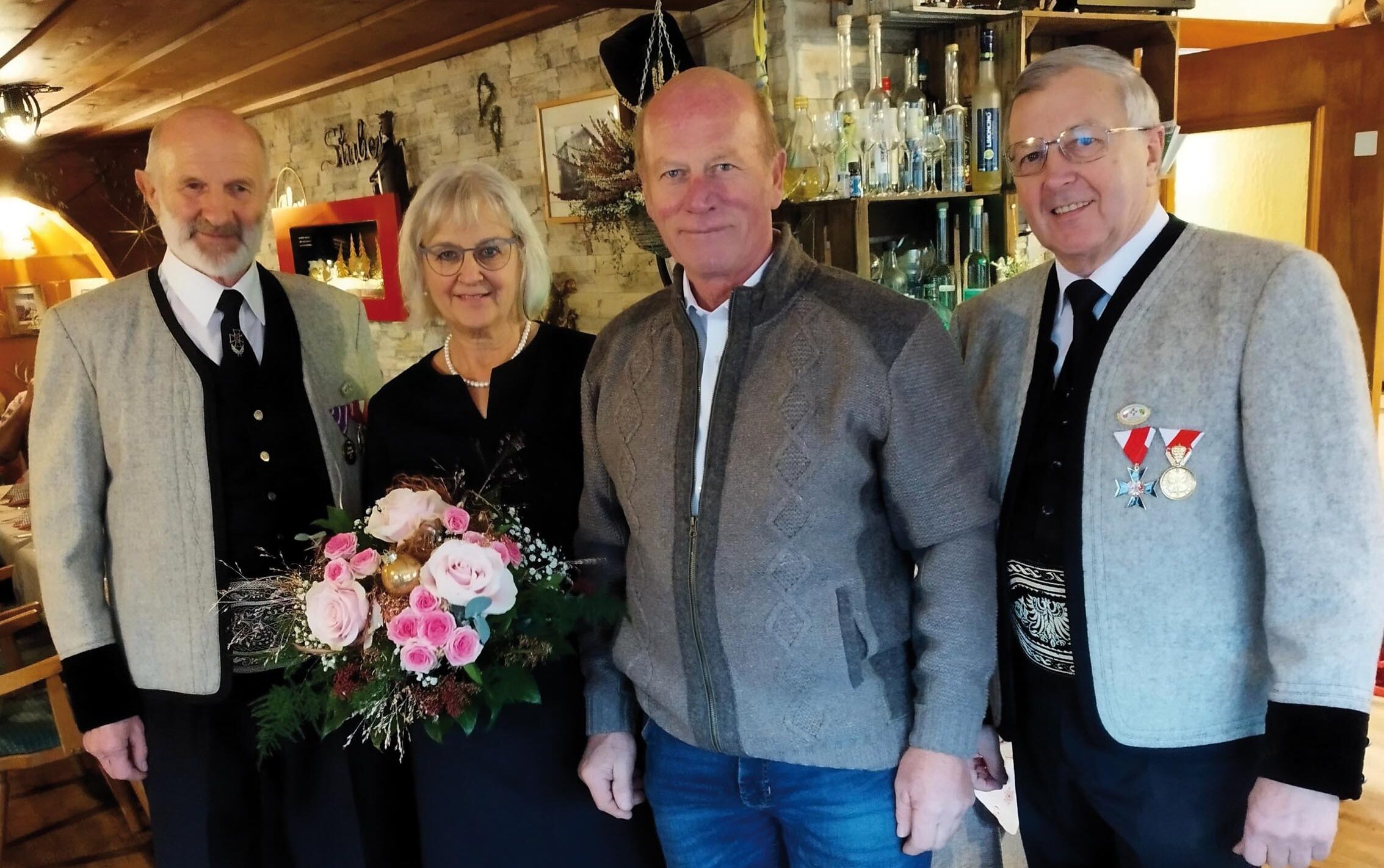 Jubilar Hans Wurm mit Gattin Elisabeth & den Gratulanten J. Steinberger (l) & Obm. R. Emberger
